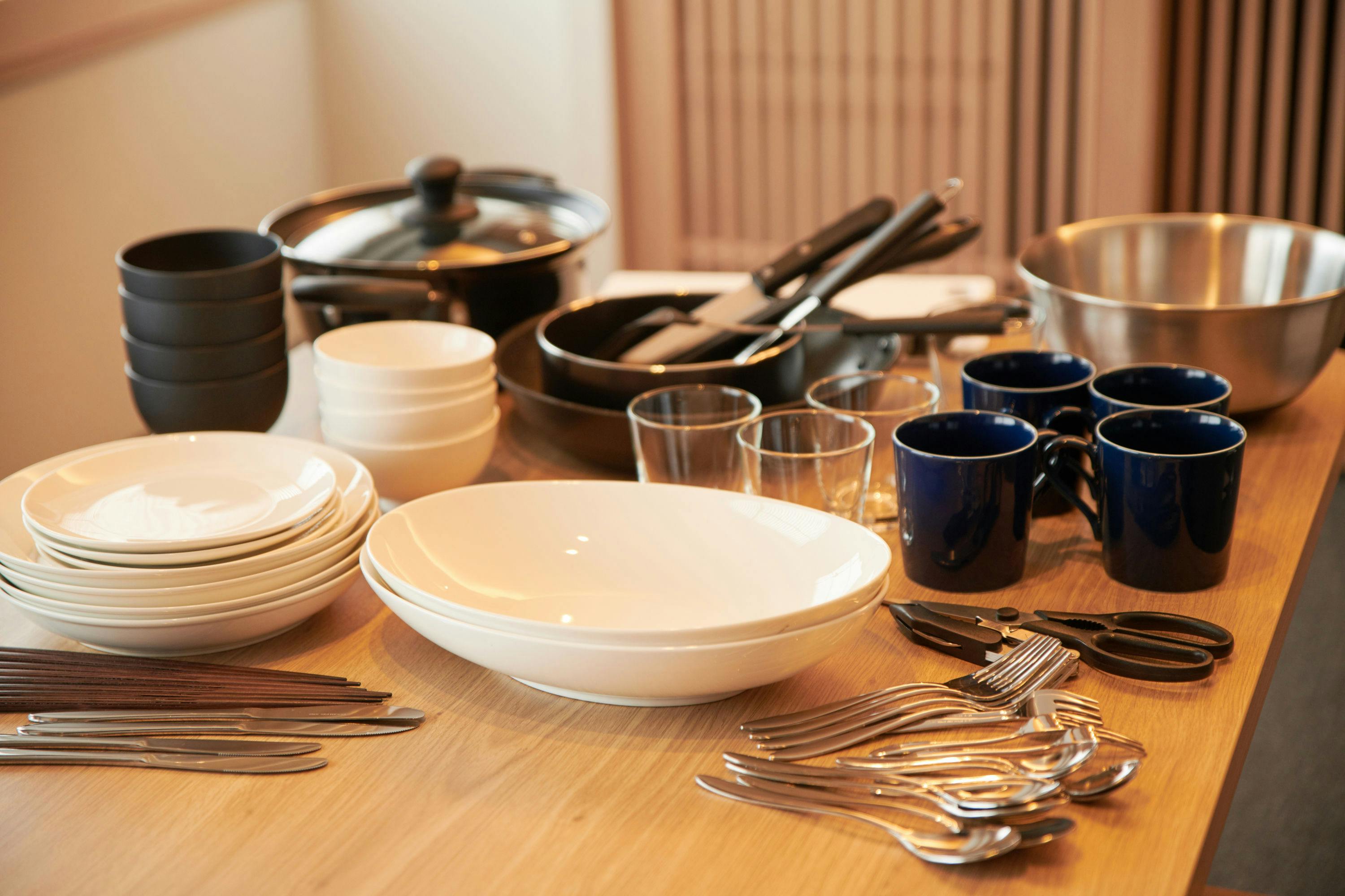 全室キッチン付、調理器具・食器類一式ご用意