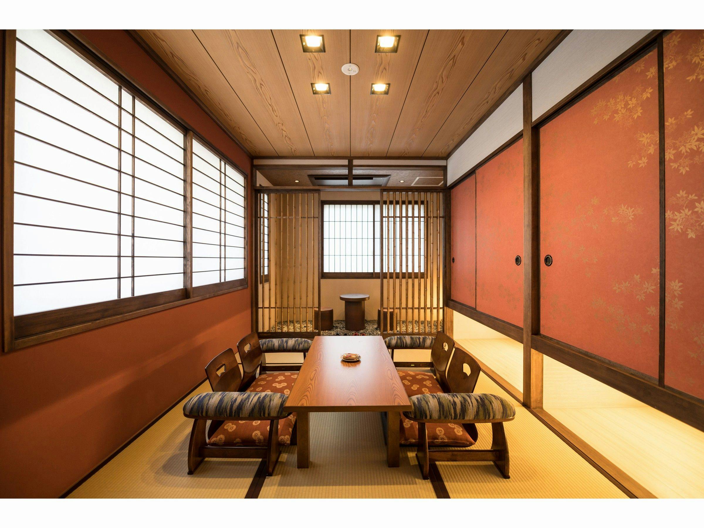 葉が色づく頃の京都を、お部屋の中でも感じていただける落ち着いた空間です。5名様までお泊りいただけるため、ご家族のご利用に最適です。