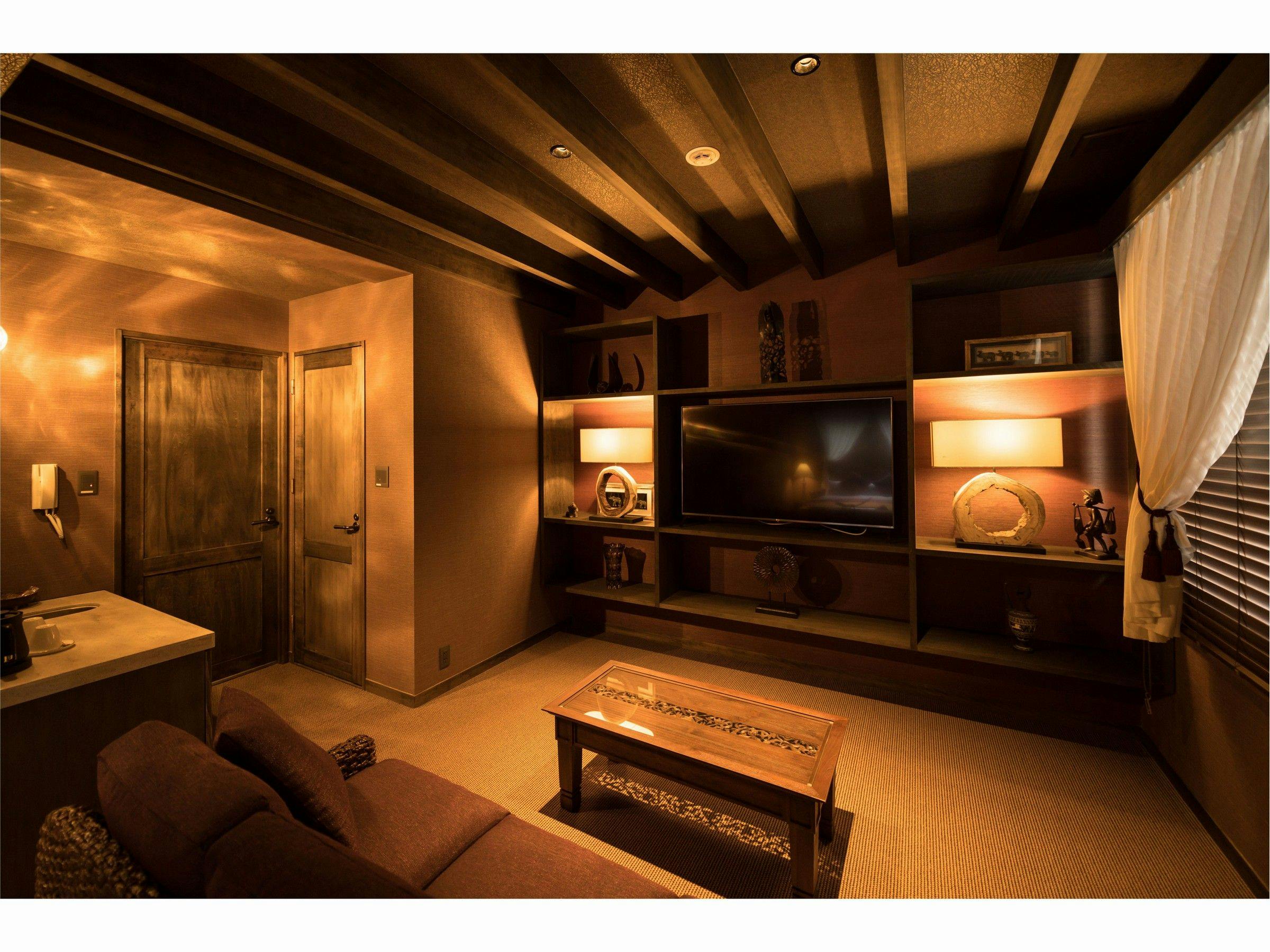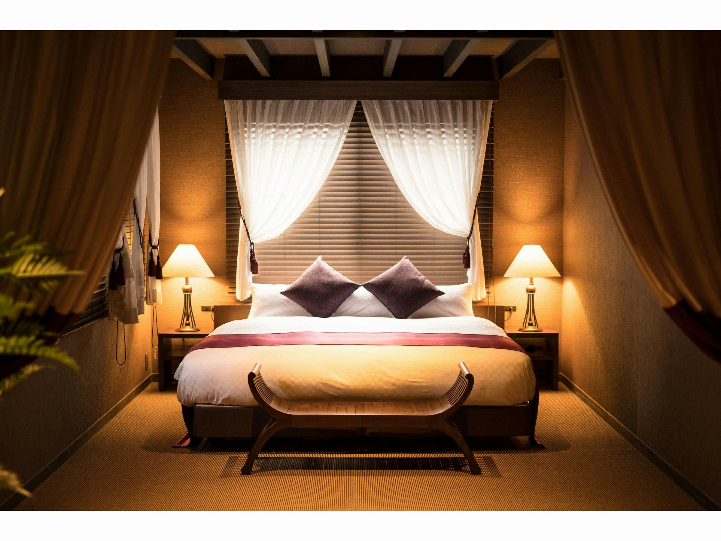 バリ島テイストのやわらかくオリエンタルな空間が、京都の旅をより上質なものに。キングサイズベッドと大きなソファに身をゆだね、存分に羽を伸ばしていただけます。