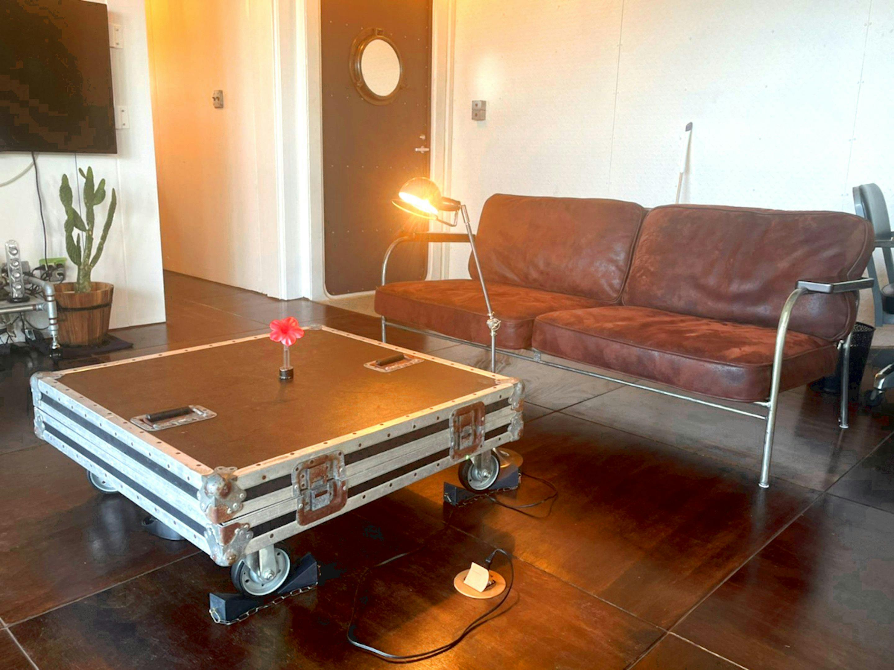 沖縄・屋我地島の高台に佇む1日1組のユニークな鉄製コテージ。ヴィンテージ照明やインテリアで落ち着ける空間となっております。玄関からテラス、ガラス張りのバスルームまでプライベート感のある沖縄ステイ