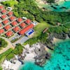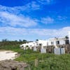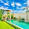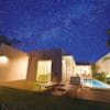 【宮古島の青い空に映える南国リゾート風のプライベートヴィラ】外壁が高くプライベート空間を演出、庭には一年間通して楽しめる温水設備のあるプライベートプールや露天風呂を完備。設備充実でロングステイに最適
