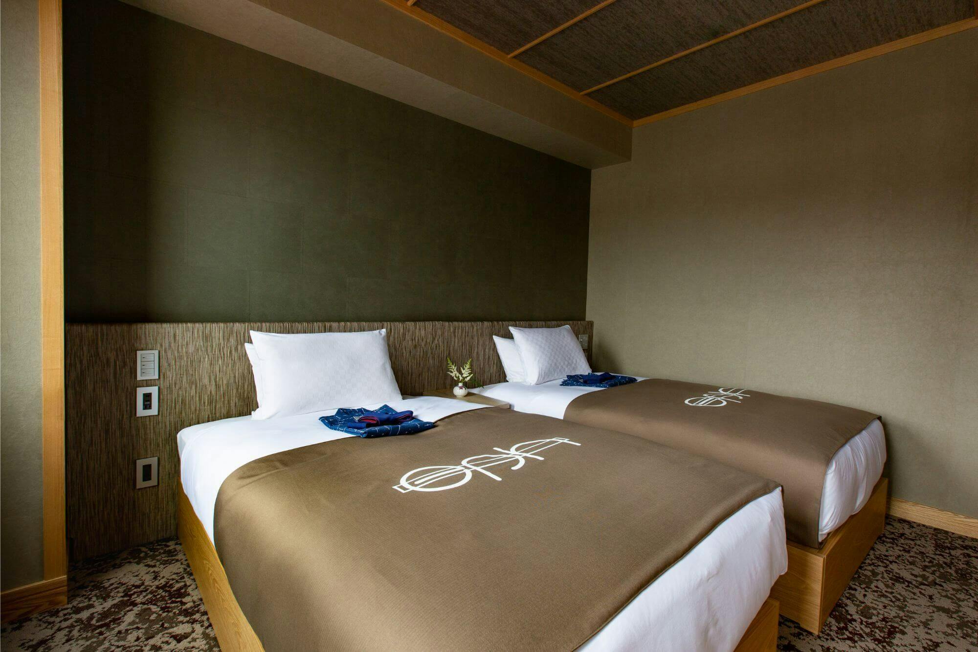 ※最大3名様+添い寝2名様(5歳以下のお子様※お食事布団無し)までご利用いただけます。※添い寝ご希望のお客様はご予約ページにて質問事項にご記入をお願い致します。・部屋高山の自然を感じられる落ち着いたデザインのお部屋。ゆったりとしたツインベッドをご用意。・洗面 浴室広々とした浴室、洗面台やウォシュレット付きトイレ等、設備も充実。