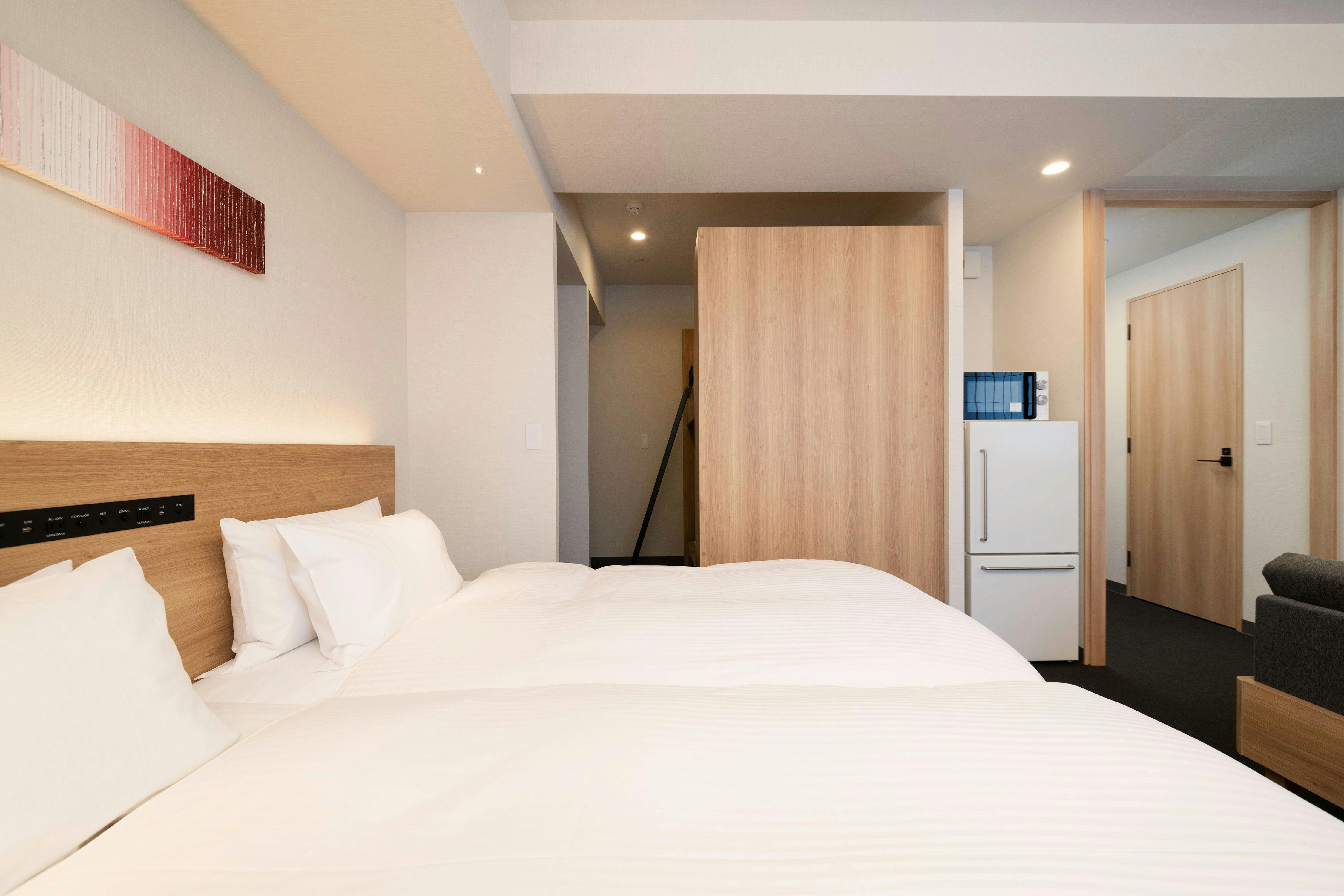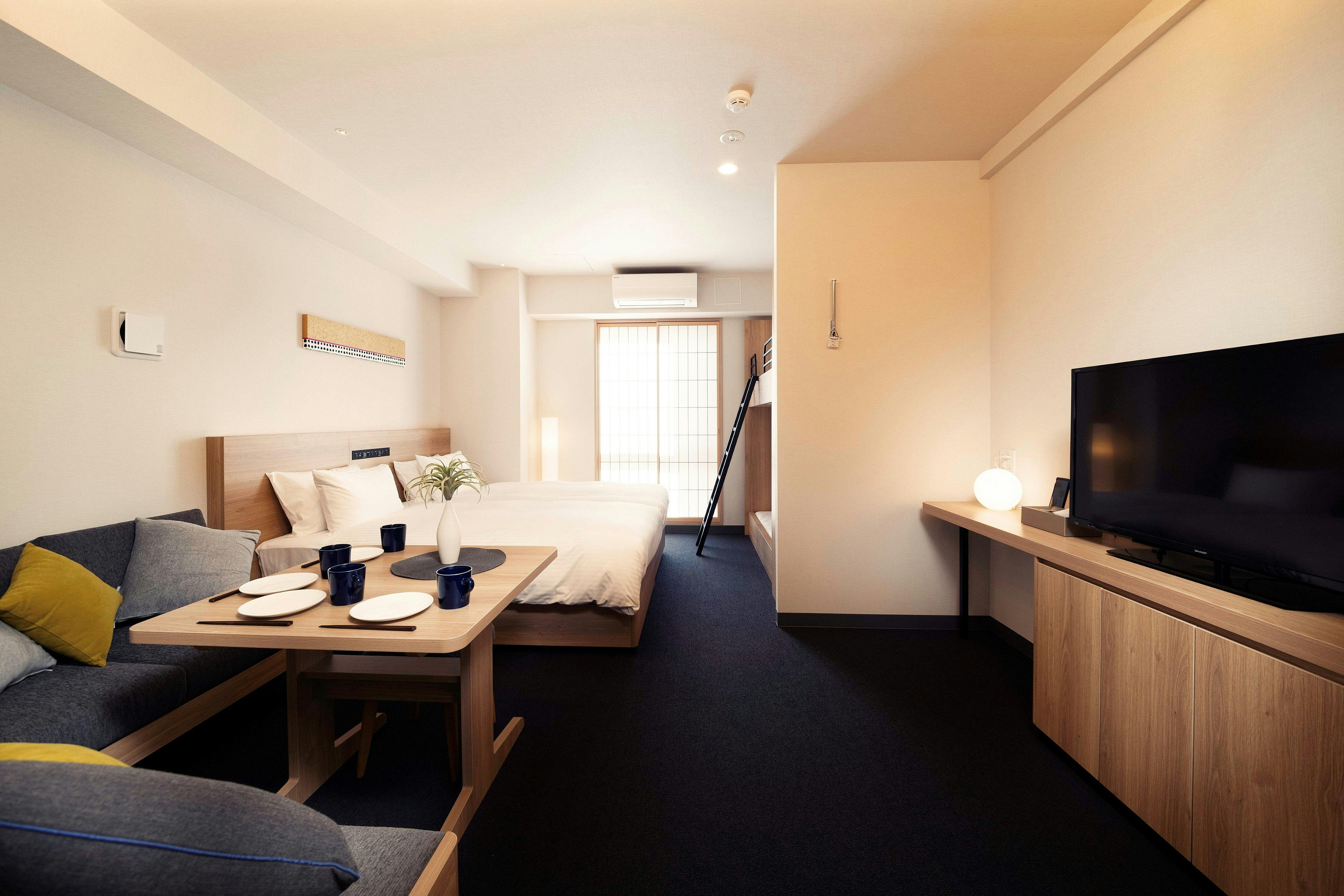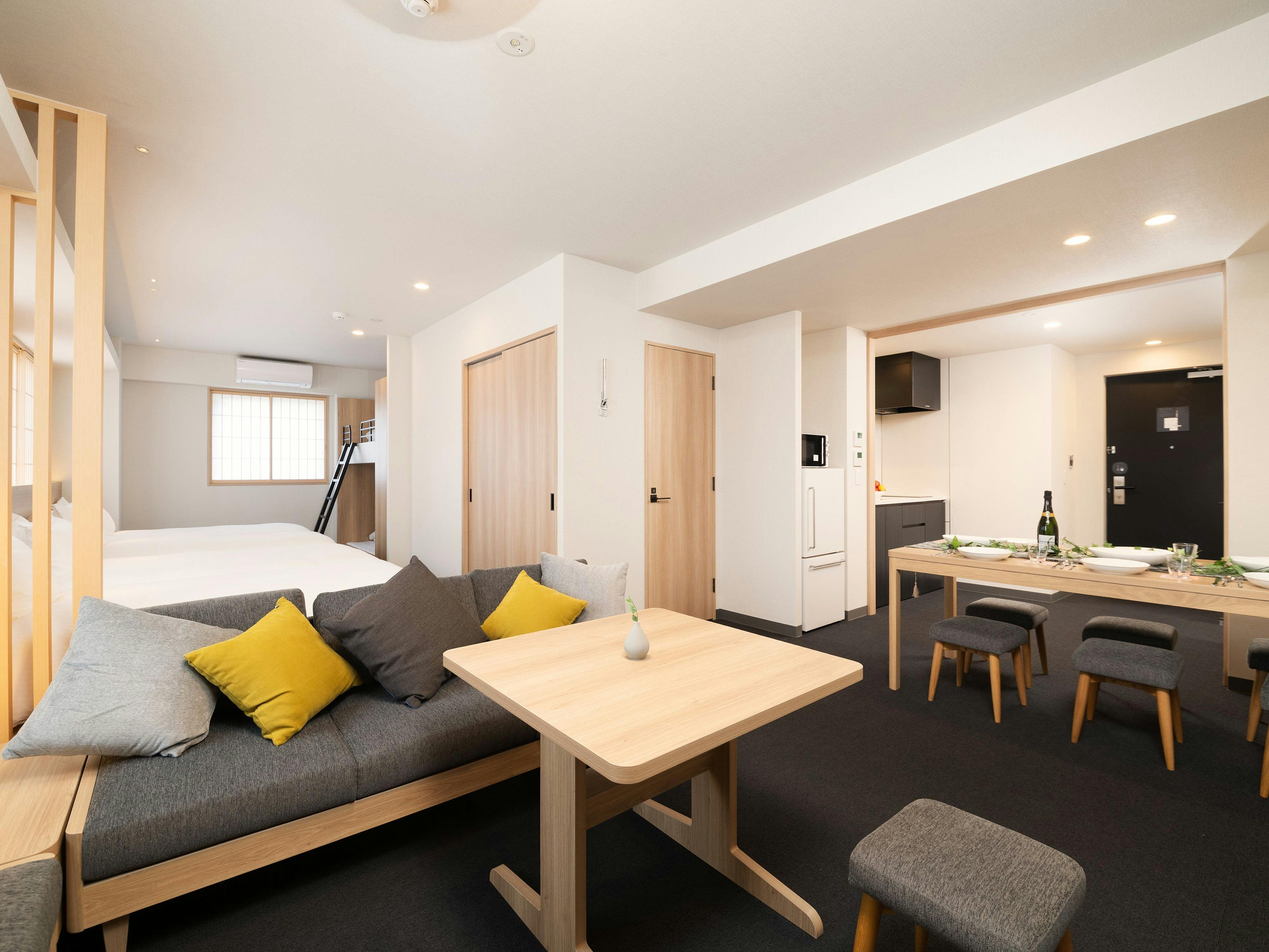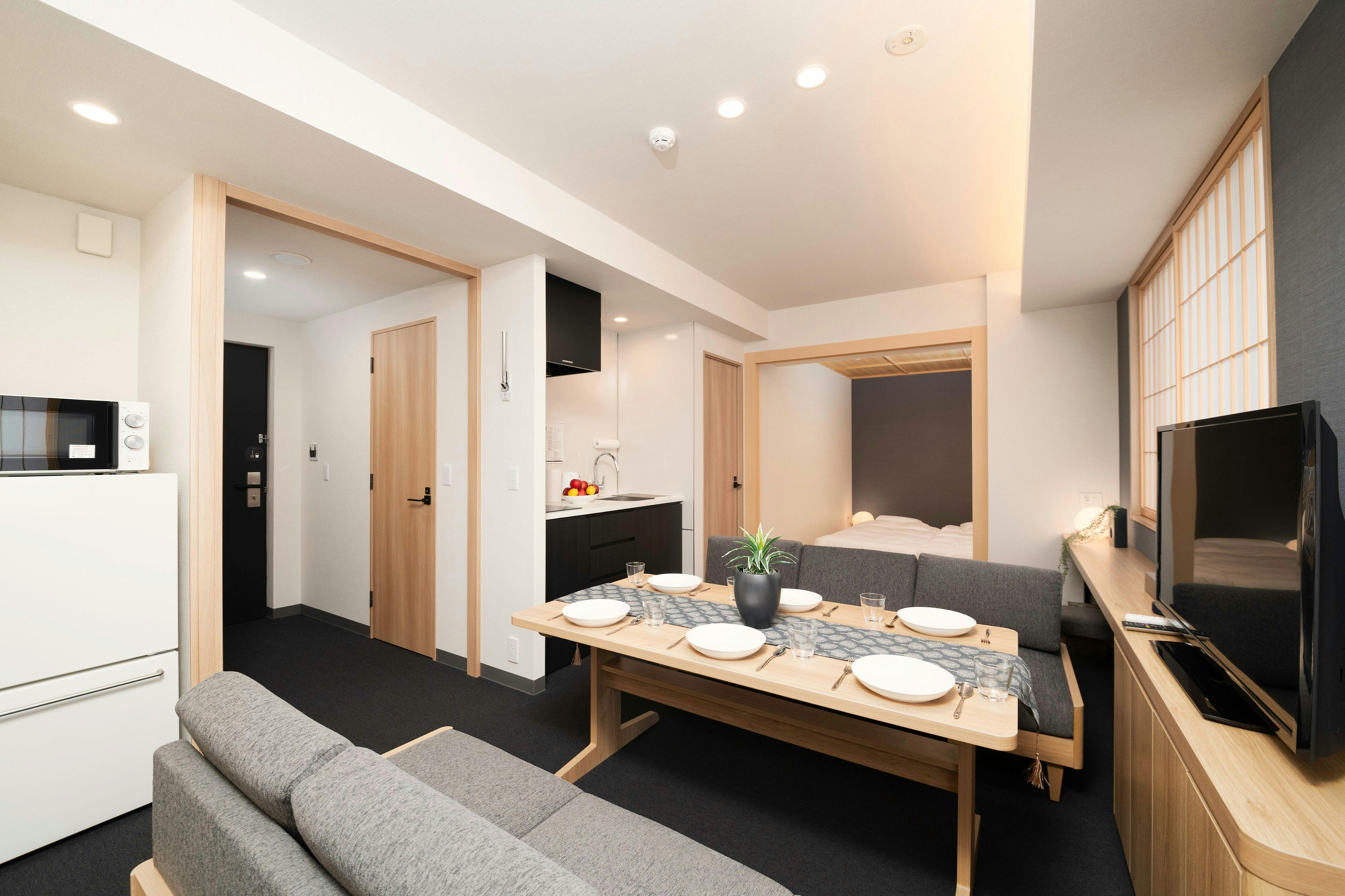 全室キッチン付で、38平米以上のゆったりとした和モダンの客室