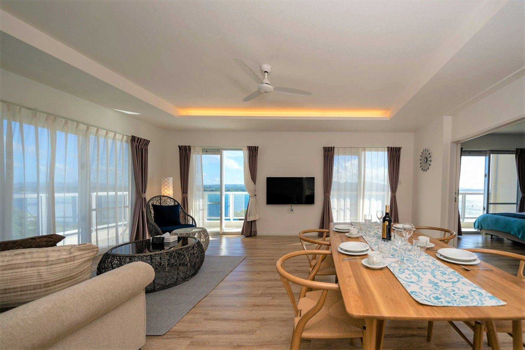 お部屋からエメラルドグリーンの古宇利の海を贅沢に一望できる、ハイクラスなプライベートプール付きヴィラ。