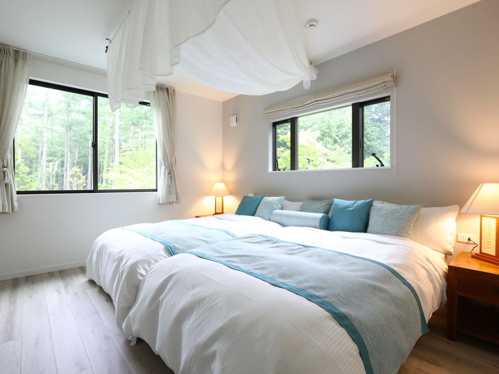 1階和室:8畳(4名様まで可)2階和室:12畳(6名様まで可)人数に応じて寝具お布団セットをご用意いたします。