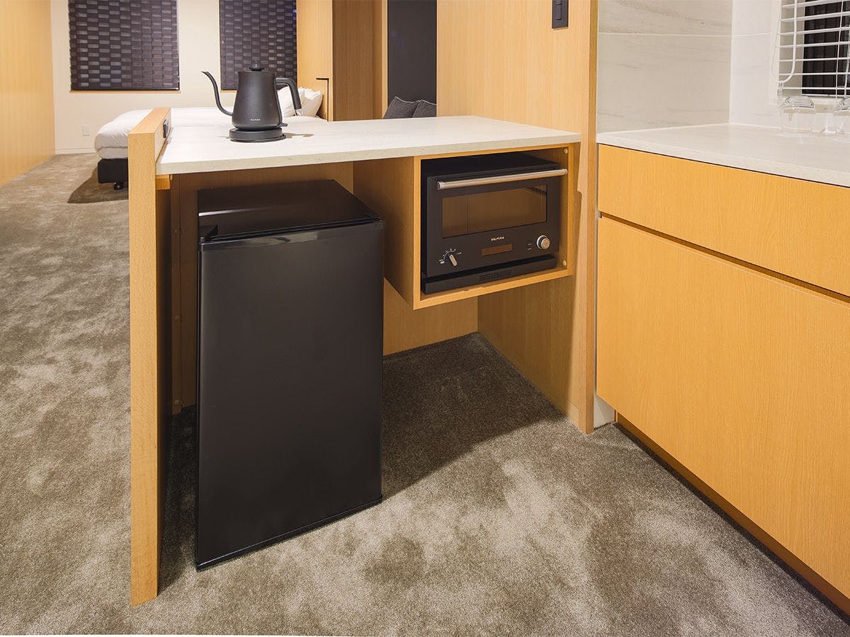 Wi-Fi/エアコン/USB電源/40インチ4K対応テレビ/ミニキッチン/冷蔵庫/高機能家電(電子レンジ、湯沸かしポット、コーヒーマシン、ダイソン製加湿空気清浄機)/ドライヤー/Maison Margiela バスアメニティ/ハミガキセット/お部屋着/タオル・バスタオル/スリッパ/洗浄機付きトイレ