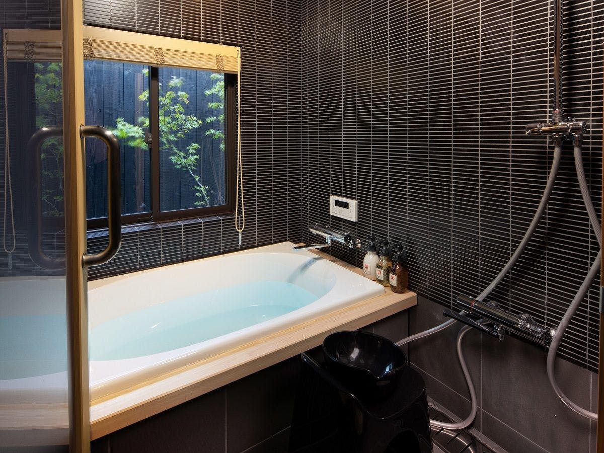 静かな住宅街の片隅に佇む京町家は京都の玄関口「京都」駅から徒歩約5分。木のぬくもりを感じる奥庭を望む寝室は、暖かみのある間接照明を使った高級感ある造り。充実の設備を備えており快適な滞在を実現。