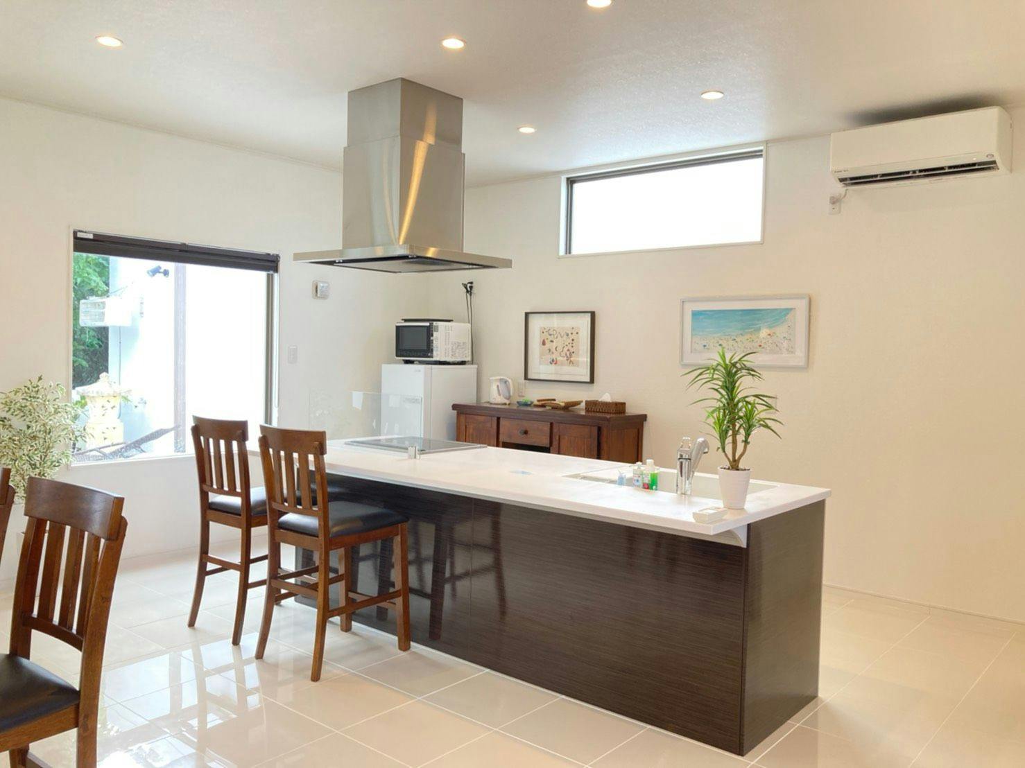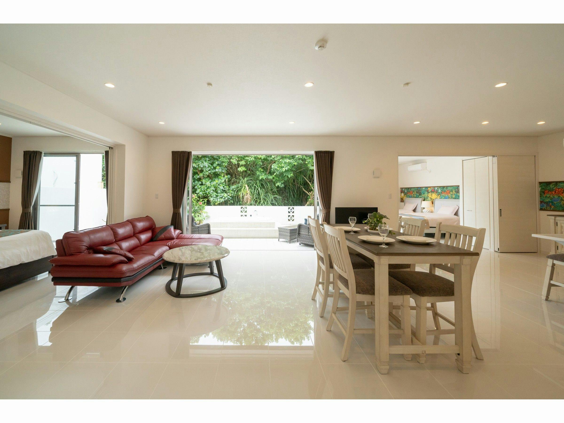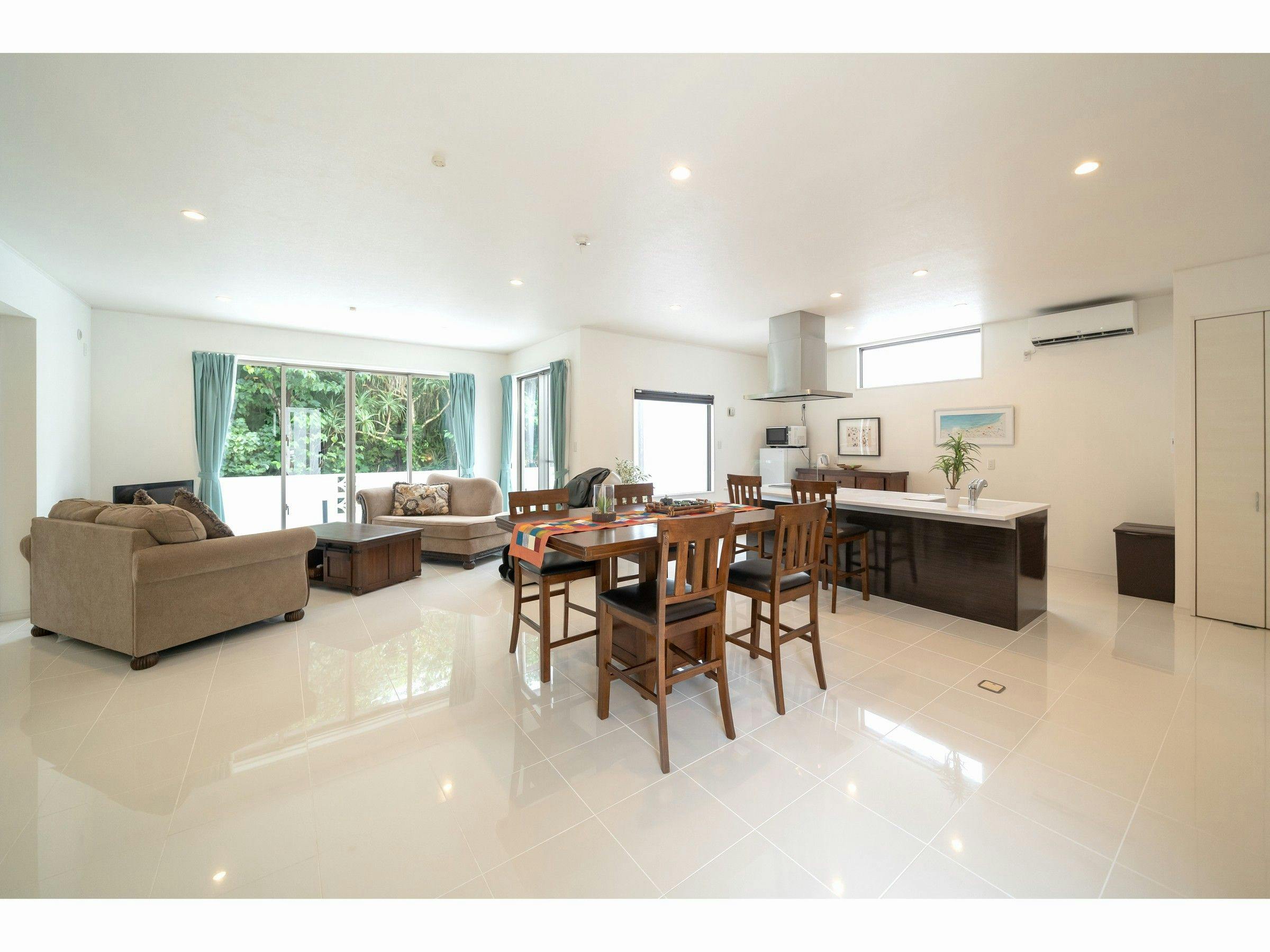 <お部屋>●洋室1(キングサイズベッド×1)●洋室2(シングルベッド×1 / ダブルベッド×1)●リビングルーム(大型ソファー)●ダイニングスペース●アイランドキッチン(IH対応)●トイレ/バスルーム※お部屋は全てクーラー完備です。<バルコニー>●ジャグジー●リラクシングスペース(テーブル・ソファー)<駐車場>●敷地内2台駐車可能
