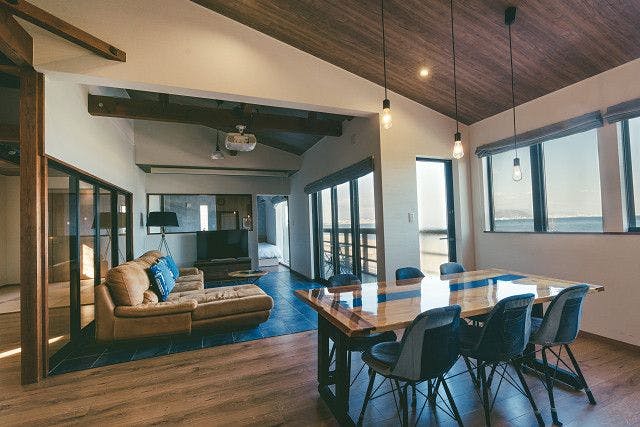 ウッドデッキから淡路島北部の海を一望!オール電化のキッチン等最新設備を備えており、快適に過ごせます。淡路島の海と風を感じながらのバーベキューは最高の思い出に!淡路ICより車で約2分