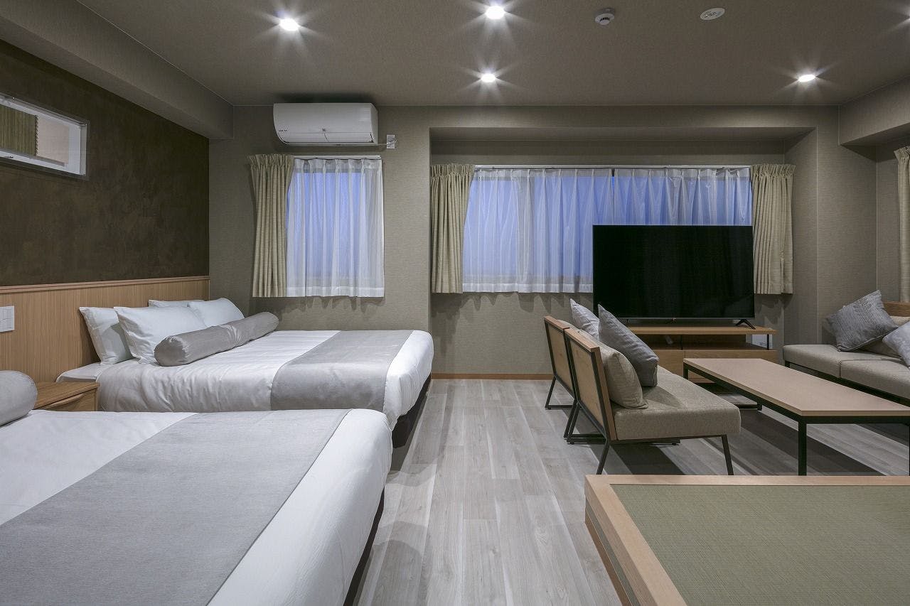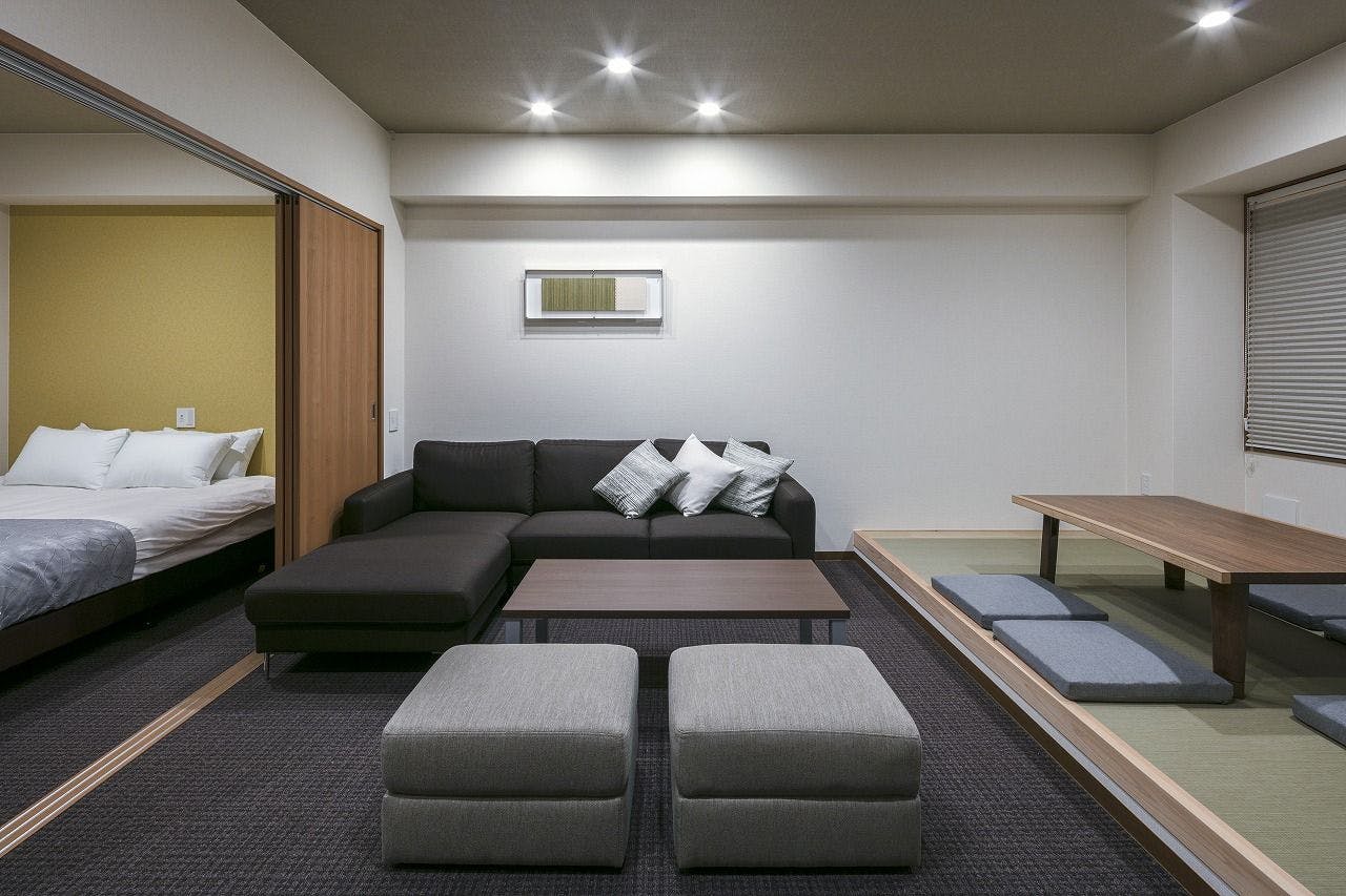 -45平米1ベッドルームの和モダンスイート- 最新家電付きキッチンとスパバスを客室に完備