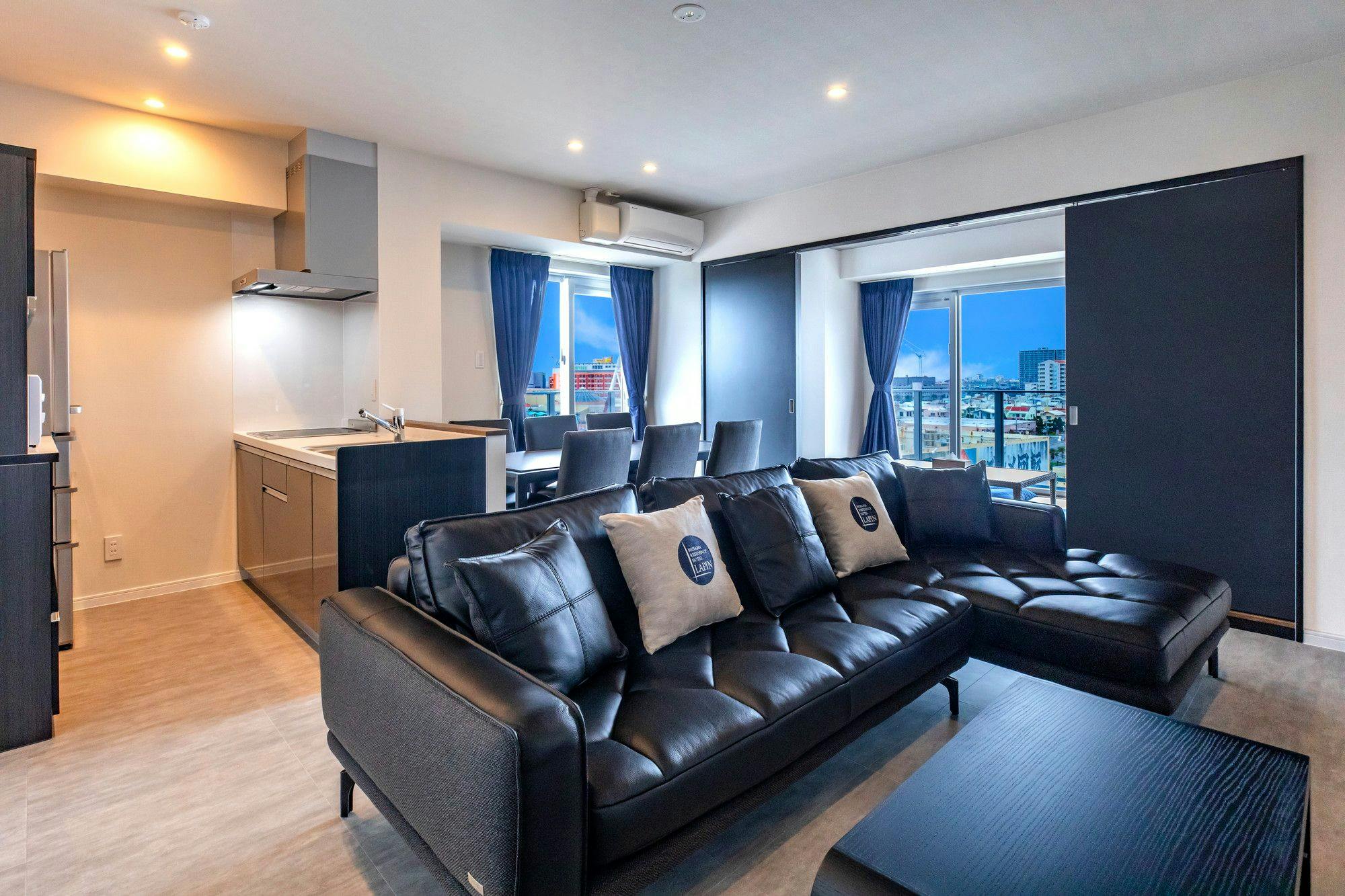 3LDKの間取りには、2つのベッドルームと和室に布団3組、リビングダイニング