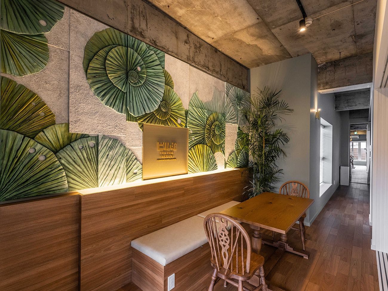「ボタニカル」をテーマにした、緑と木々が織りなすやすらぎの空間。壁面を飾るのは、空間造形作家ディルン・アーシリ・バンダーラによる、自然の息吹をたたえたアート。ダイニングキッチン付きのため、地元グルメを手に入れて、時間を気にせず楽しむことも。旅先で困りがちな、お子様の食事のご用意もこちらでどうぞ。