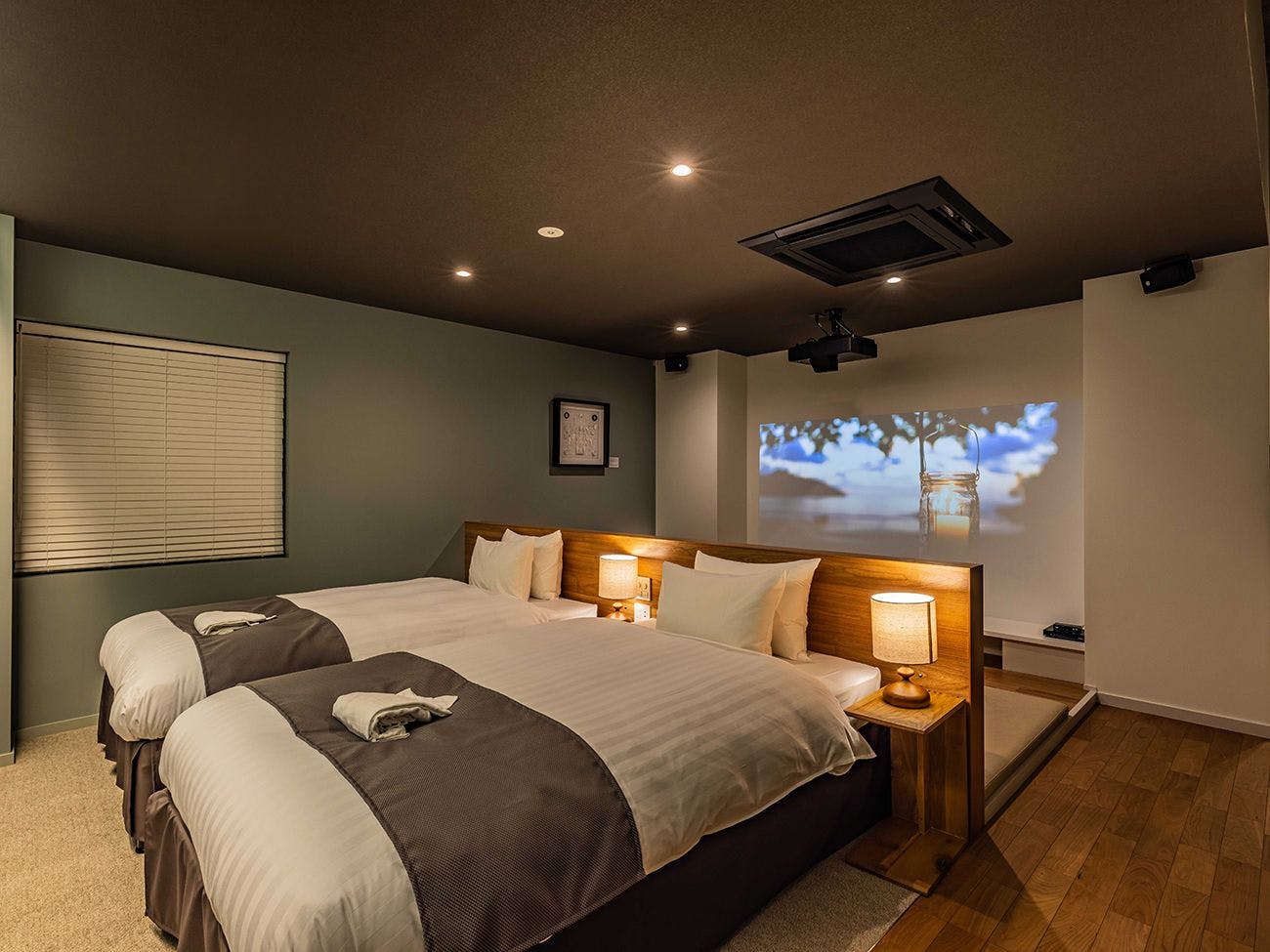 カラフルなインテリアや愛らしいファニチャーが遊びゴコロを刺激する、デザイナーズホテルを彷彿とさせるお部屋です。5名様までご利用いただける空間は、女子会や同窓会にもおすすめ。3つのお部屋をつなげれば、最多13名様の宿泊が可能。パターゴルフのスペースもあり、おしゃべりや気分が盛り上がること間違いなしです。