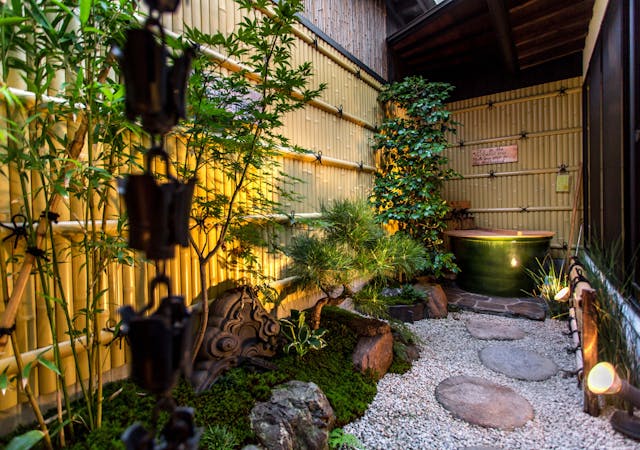明治の古民家を大胆に改装、ゆっくりと休める大きなベッド、ゆったりとくつろげる和テイストのリビングをご用意いたしました。建物の中庭も見どころのひとつ。庭師が丹精込めて作り上げた自慢のお庭は、様々な四季の表情を見せてくれることでしょう。くつろぎと歴史の空間で、贅沢な時間をお楽しみください。