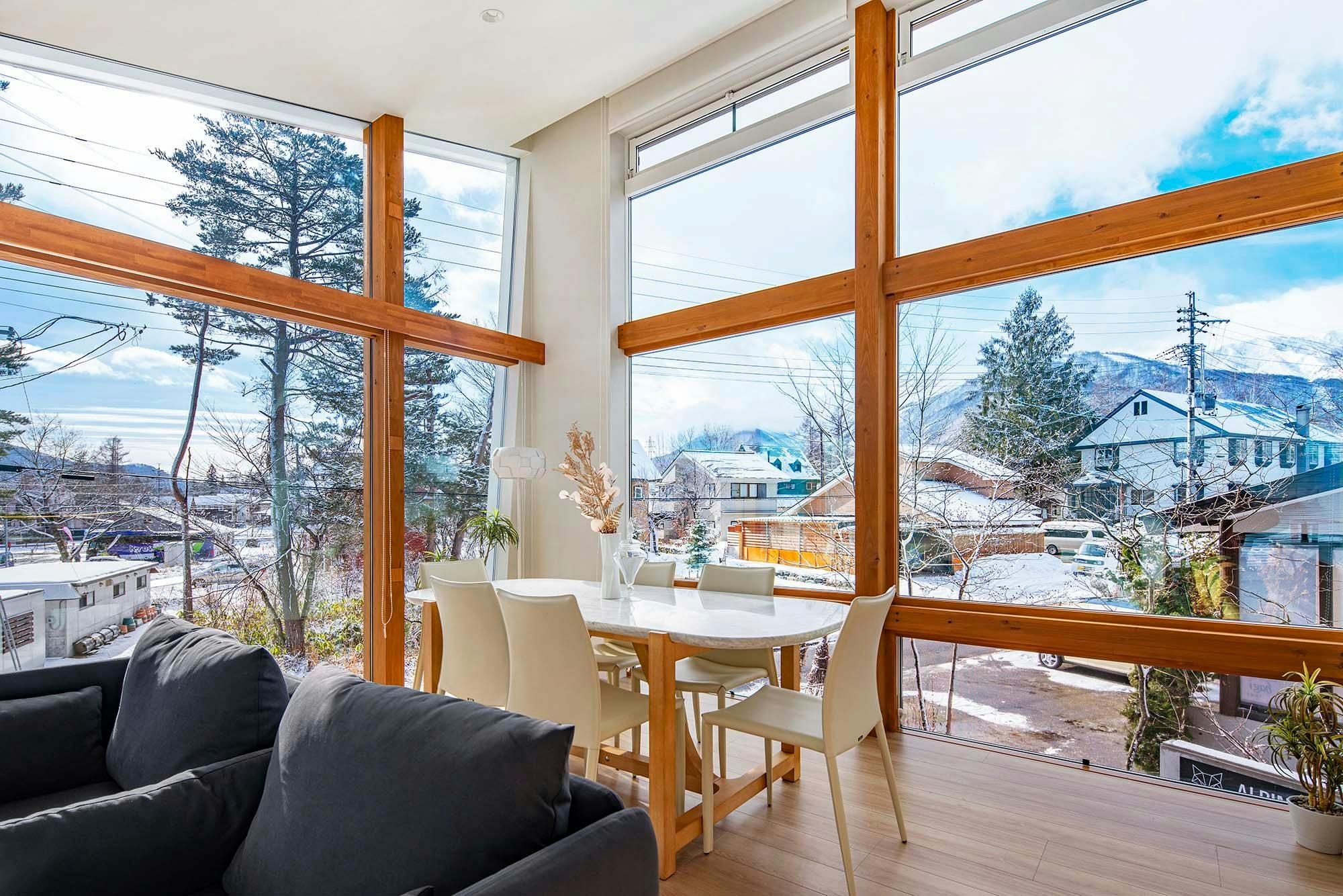 2ベッドルームユニットの大きな窓から太陽の光が差し込み、五竜岳を望む事のできる開放感のあるリビングダイニングキッチンも非日常的な空間となっています。