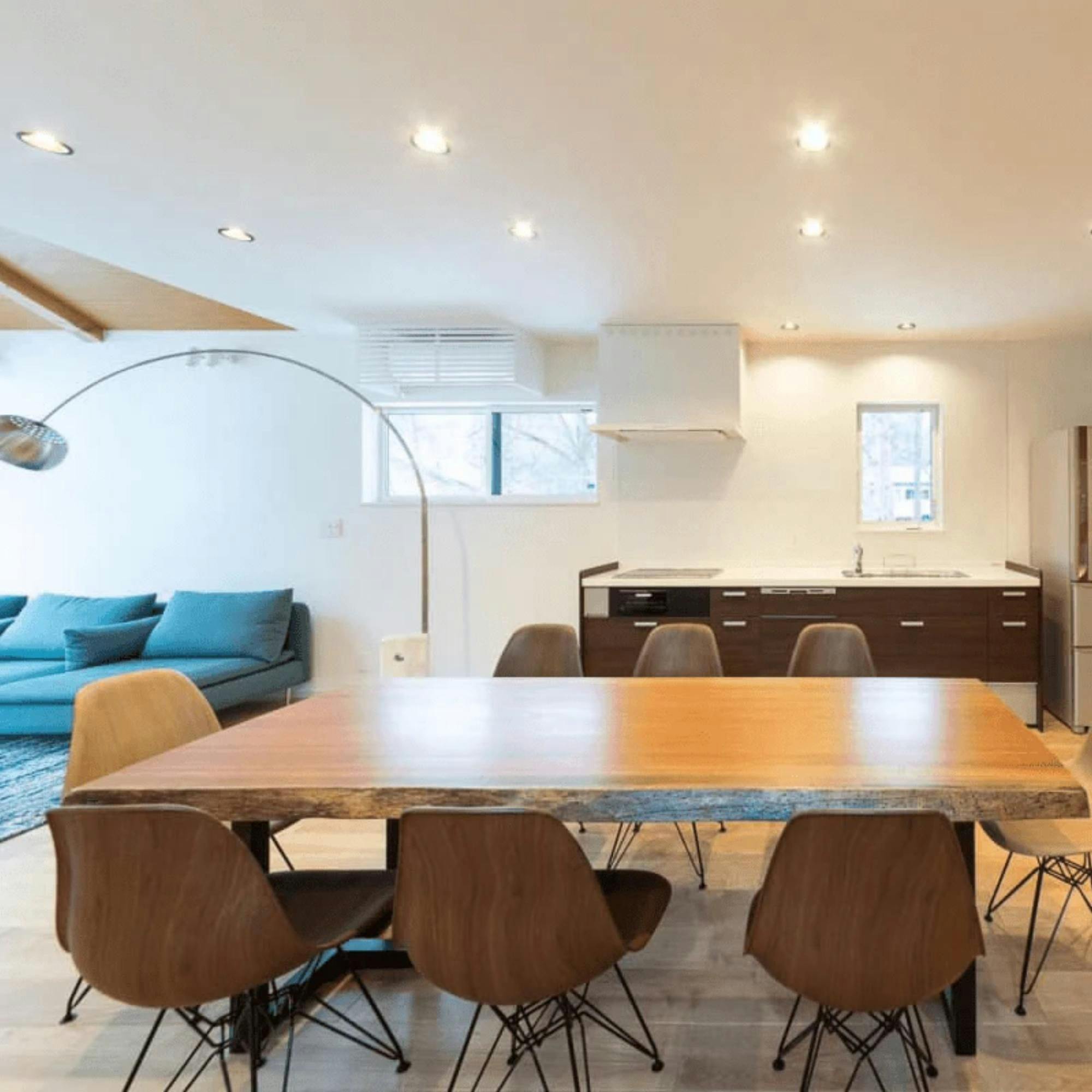 洗練されたインテリアとオープンキッチン、広々としたリビングダイニング。