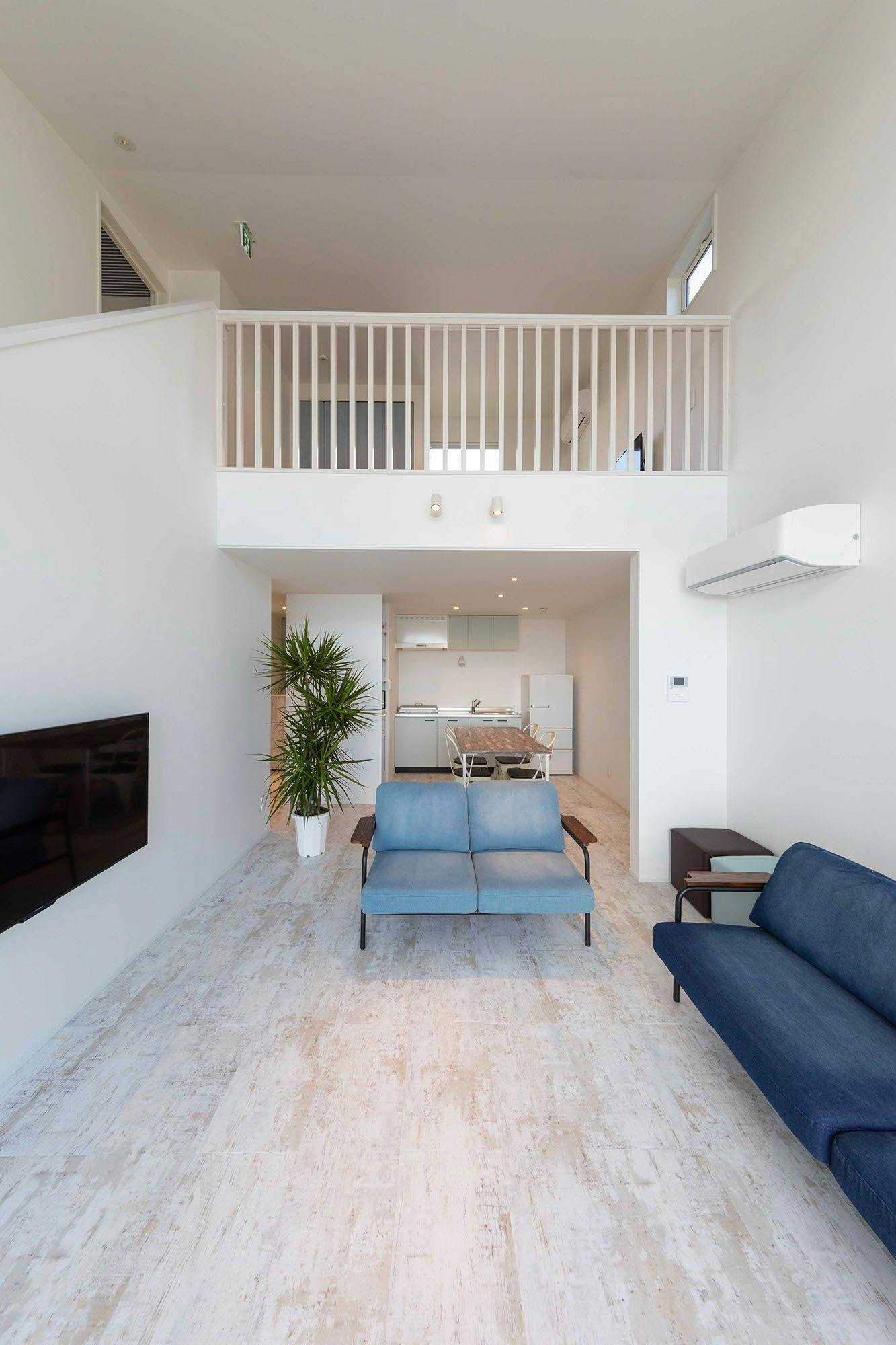 2階のベッドルームはゆっくりお休みいただけるツインタイプで、扉が閉まり完全な個室となります。ベッド以外はオープンな畳スペースに最大4組お布団を敷いてお休みいただけます。
