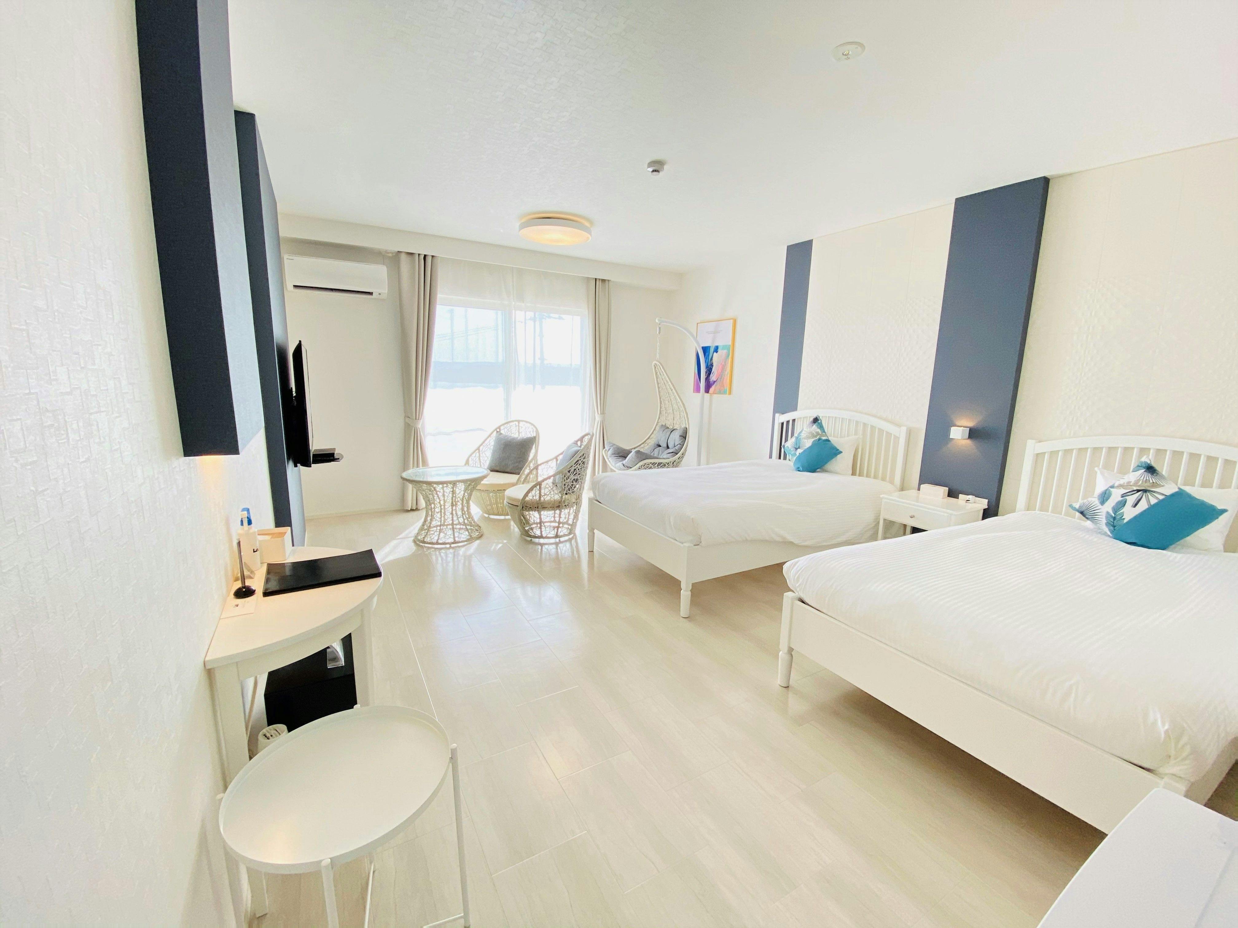 □デラックスルームにはハンギングチェアを設置しています。