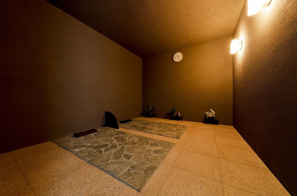 囲炉裏を囲みながら、仲間皆で談笑すれば、格別の旅の思い出になるでしょう。オーストリア産のバドガシュタイン鉱石を床に敷き詰めた本格岩盤を備えております。