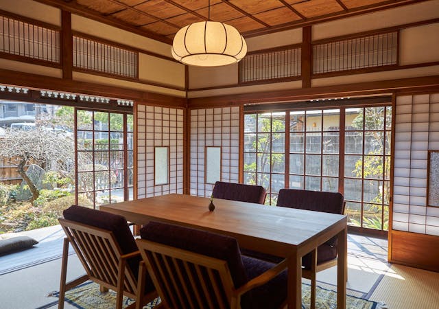 お庭が眺められる日がたっぷり当たる縁側、檜の香る信楽焼のお風呂など、古き良き日本家屋の良さを生かした贅沢空間は少人数のリラックス旅行にもぴったり。