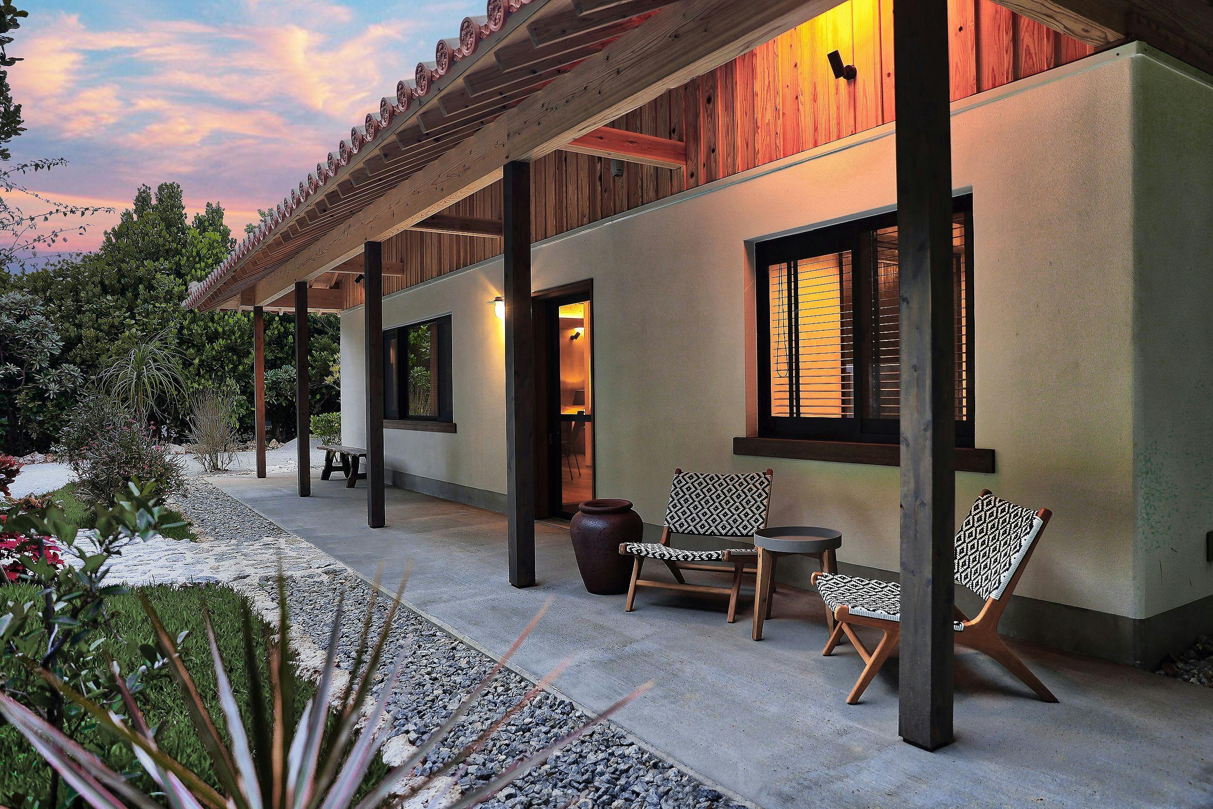 フクギに囲まれた庭や花を、キッチンやリビングから眺めることが出来ます。トイレやバスルームの窓からも明るい光が入ります。バリ島をイメージした落ち着いたベッドルームとハワイをイメージした明るいベッドルームをご用意しております。