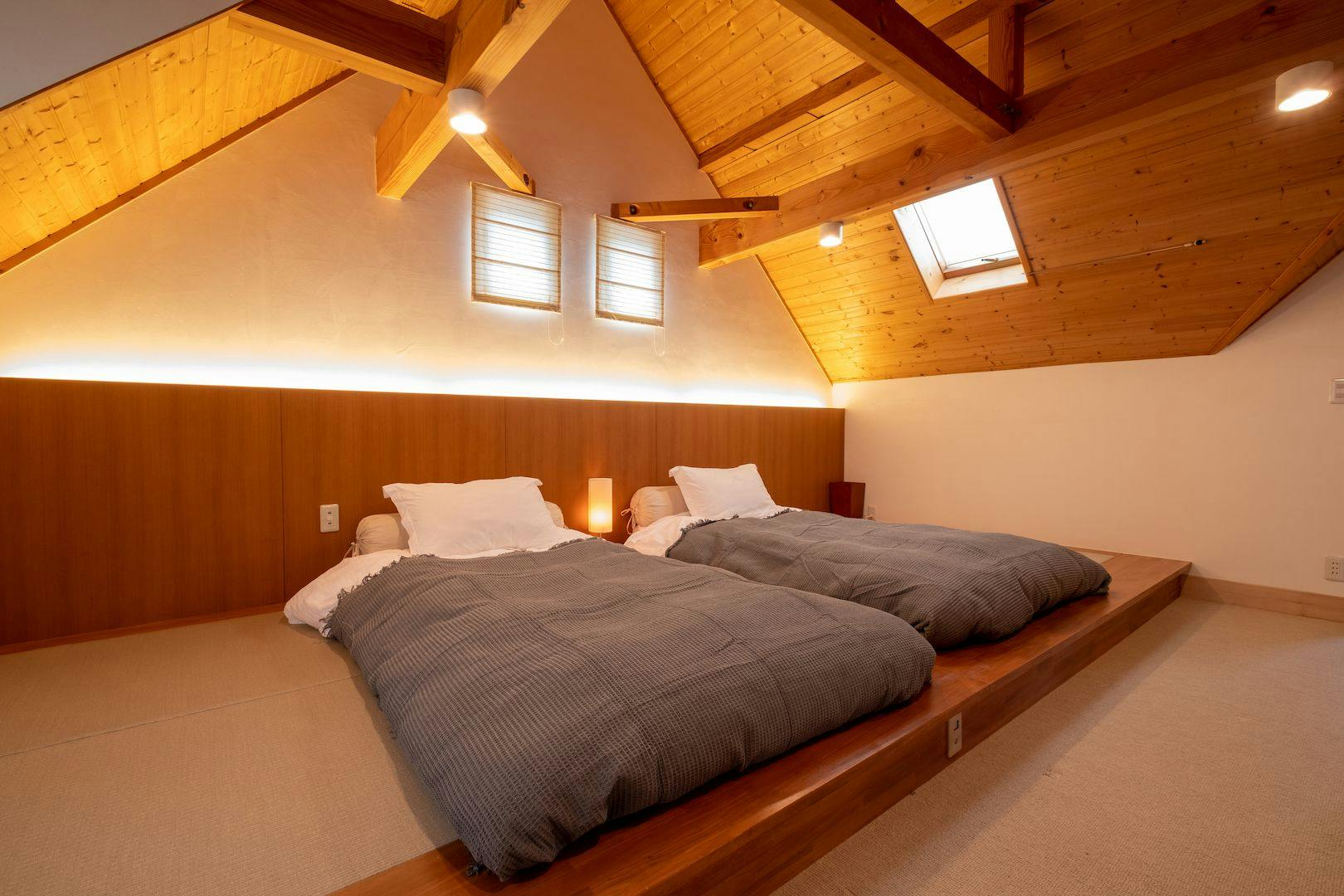 そして就寝時にはふかふかのベッドに仰向けになると、天窓から真っ暗闇の中に見える天の川のような数々の星を眺めることができます。
