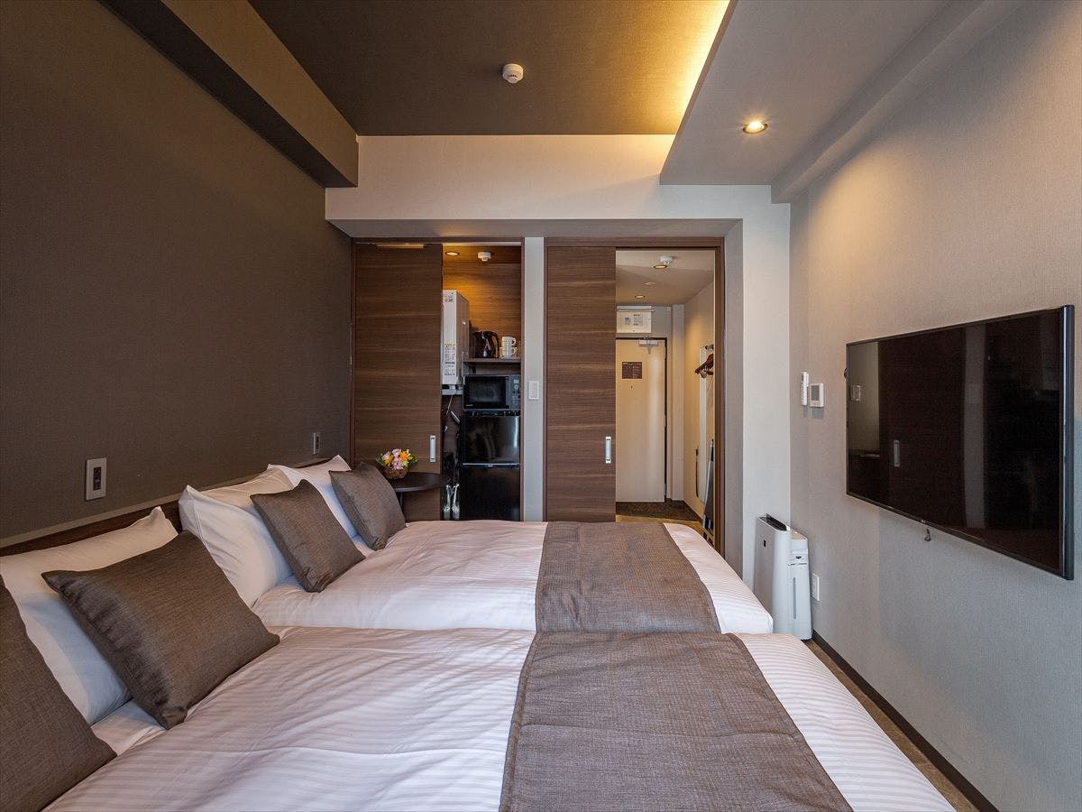 Wi-Fi接続無料/セミダブルベッド×2台/冷蔵庫、電子レンジ、洗濯機/温水洗浄便座