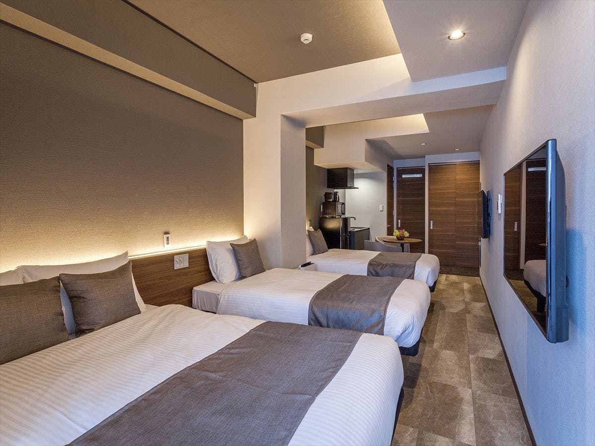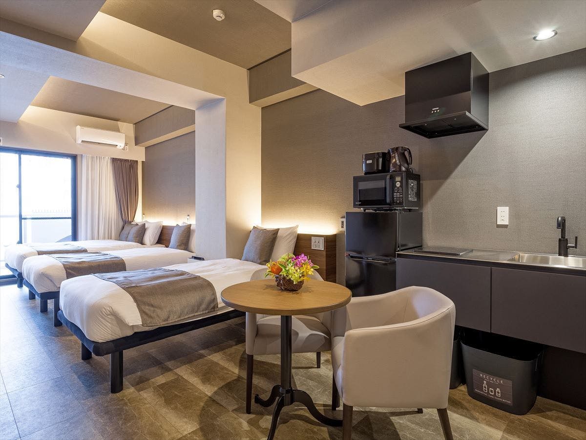 Wi-Fi接続無料/シングルベッド×2台・ダブルベッド×1台/キッチン、冷蔵庫、電子レンジ、洗濯機/温水洗浄便座