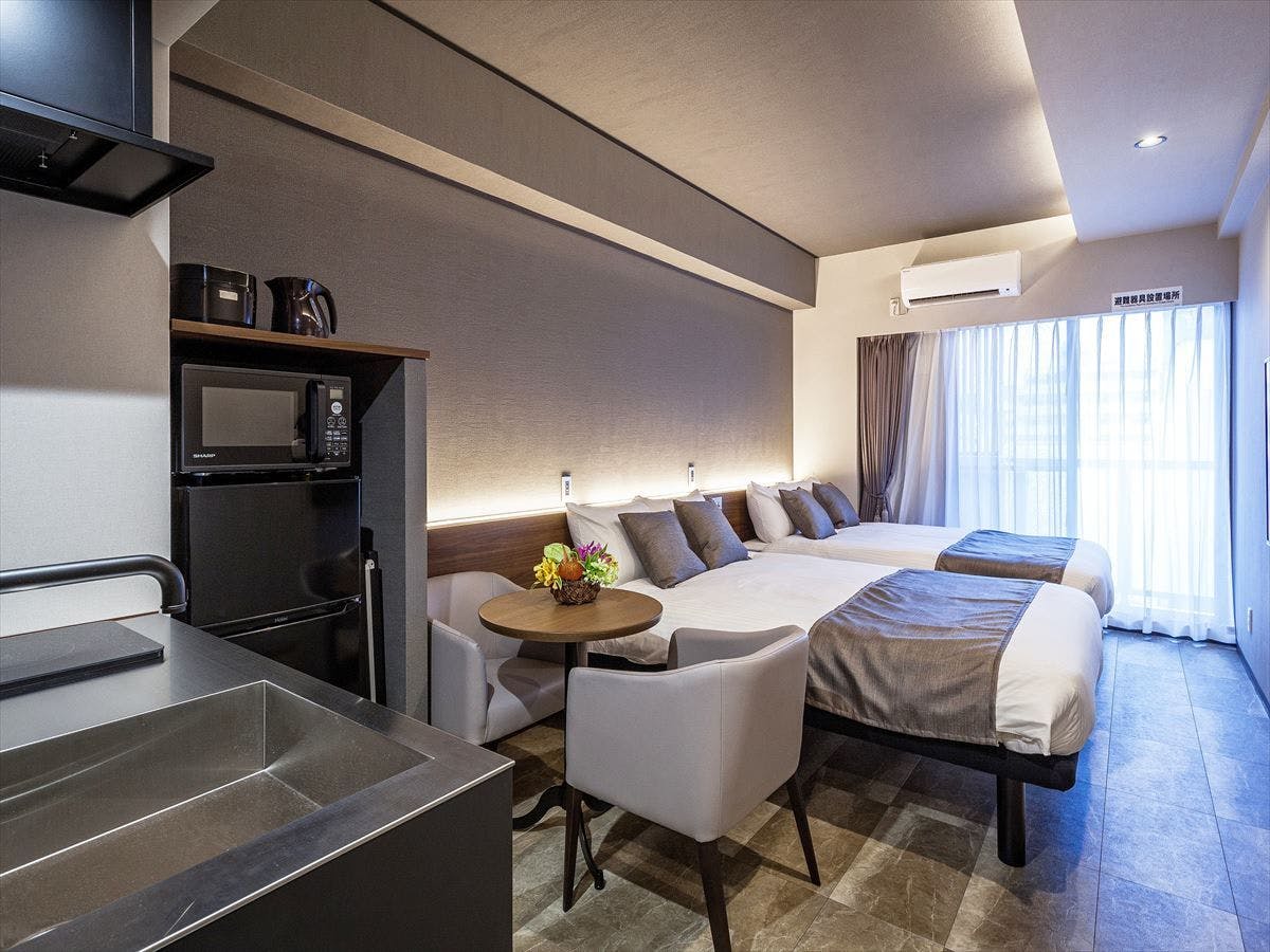 Wi-Fi接続無料/ダブルベッド×2台/キッチン、冷蔵庫、電子レンジ、洗濯機/温水洗浄便座