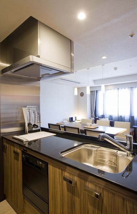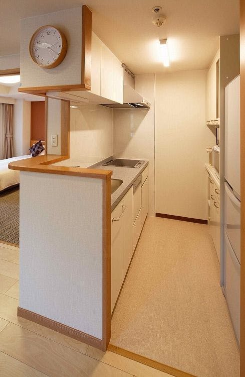 お部屋は最上階専用フロアのリビングダイニング付き2LDK。地元の食材を調理できるフルキッチンも完備。小さなお子様連れの方も安心してご旅行を楽しめます。