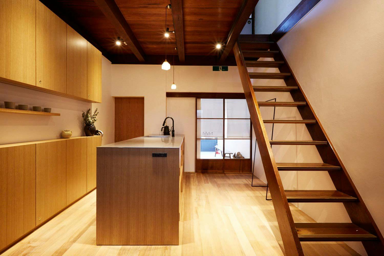 一棟貸し宿です。1階は漆喰と無垢のフローリングのLDKとバスルーム、2階は3部屋の続き間の6帖の和室です。「古い町並み」からも徒歩5分程度の神社の前の静かな場所にあります。築95年の町家作りの古民家ですので、壁をお隣と共有しています。22時以降はお静かになさってください。パーティもできませんのでご了承ください。