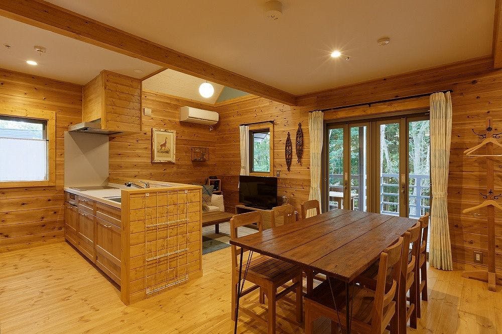 お部屋はリビングダイニング付きの2階建て3LDK。地元の食材を調理できるフルキッチンも完備。愛犬や愛猫と一緒に、小さなお子様連れの方も安心してご旅行を楽しめます。