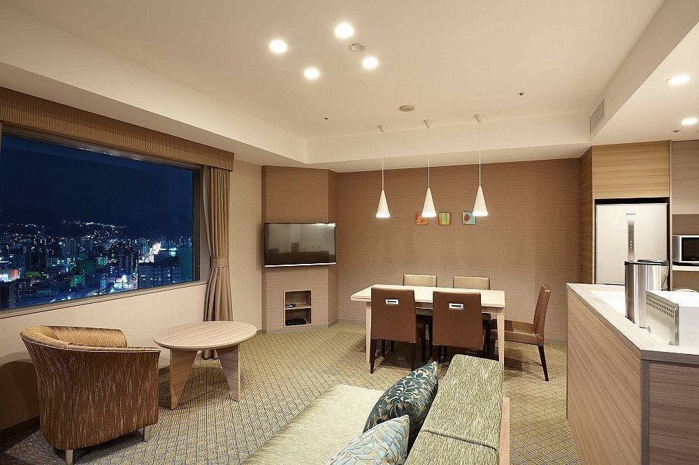 お部屋はリビングダイニング付きの2LDK。地元の食材を調理できるフルキッチンも完備。小さなお子様連れの方も安心してご旅行を楽しめます。