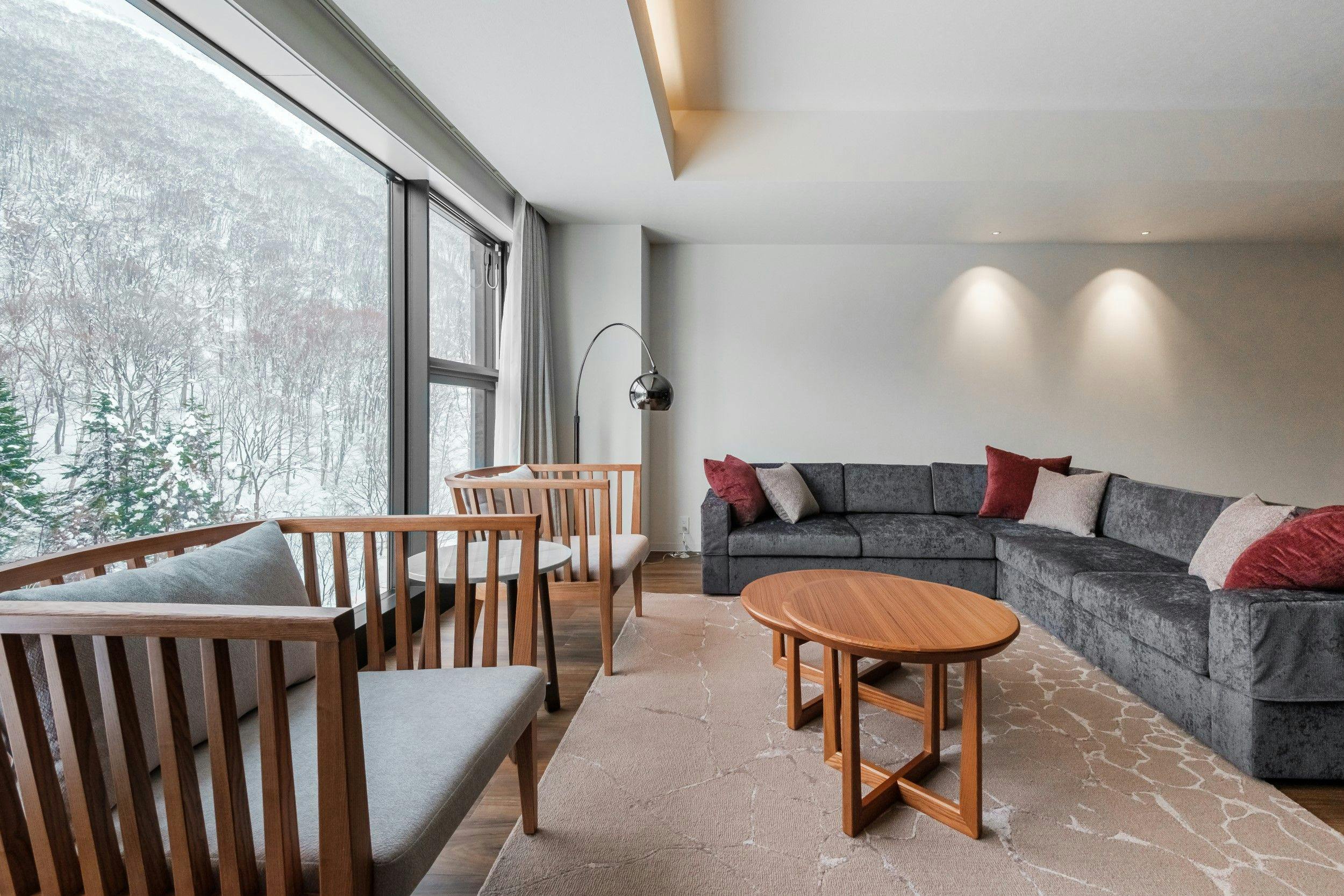 Mt.ウエストのスキー場と、Mt.イゾラを東に望む好ロケーションで、季節ごとの美しさを絵画のように窓からの借景で楽しめるのが魅力。ルスツの素晴らしい風景を上空から見下ろす、そんな魔法にかかったような感覚を体験したいお客様には、特におすすめです。