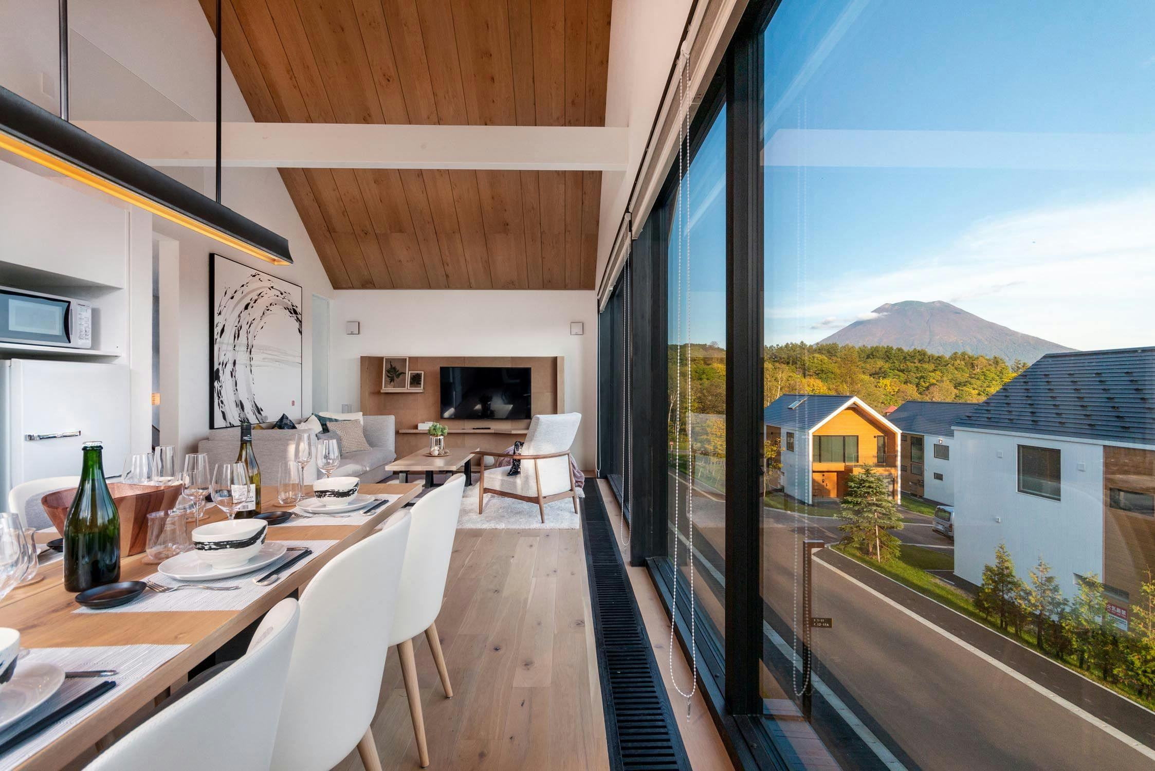 2階リビングダイニングの大きな窓からはニセコの季節の移り変わりが一望できます。