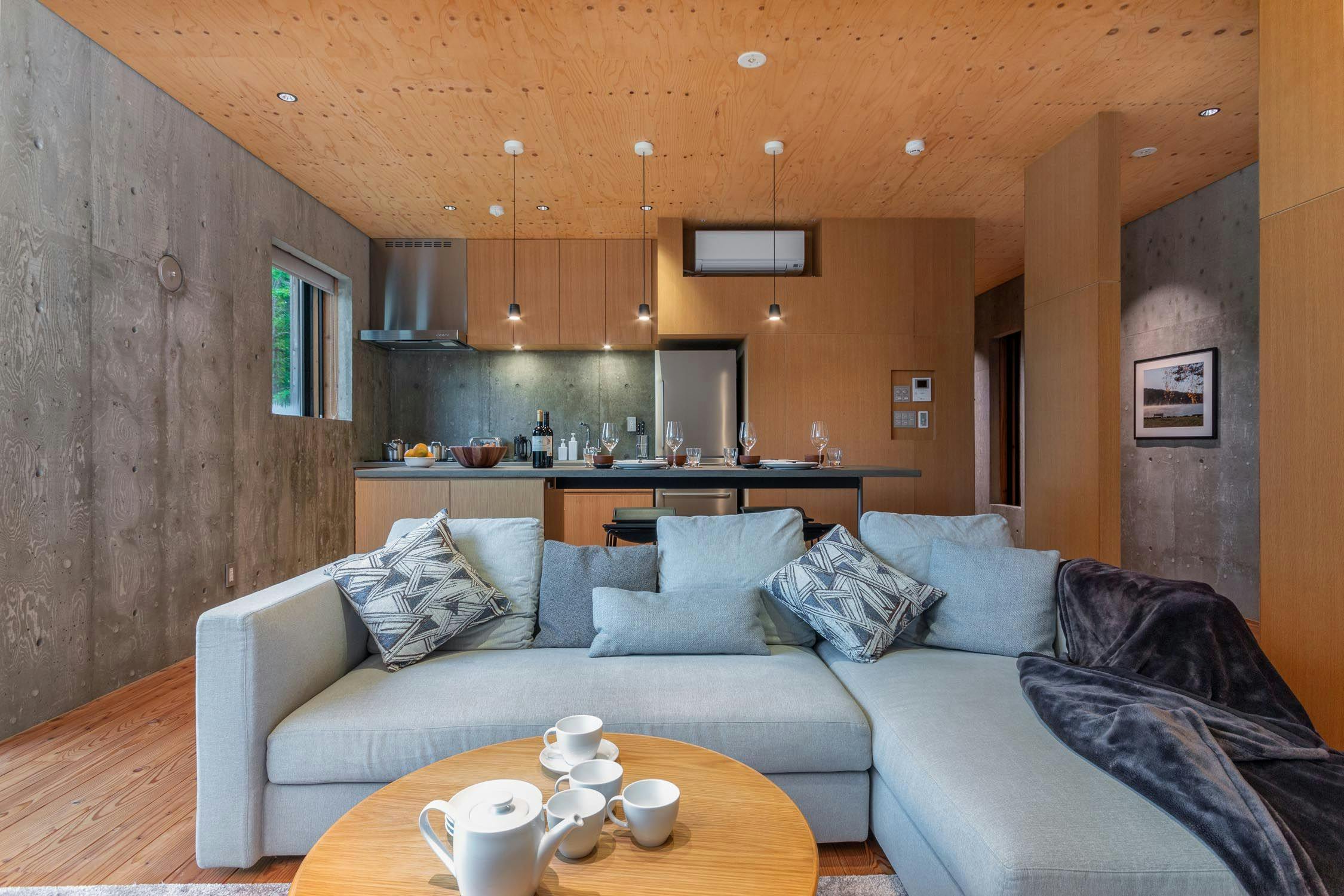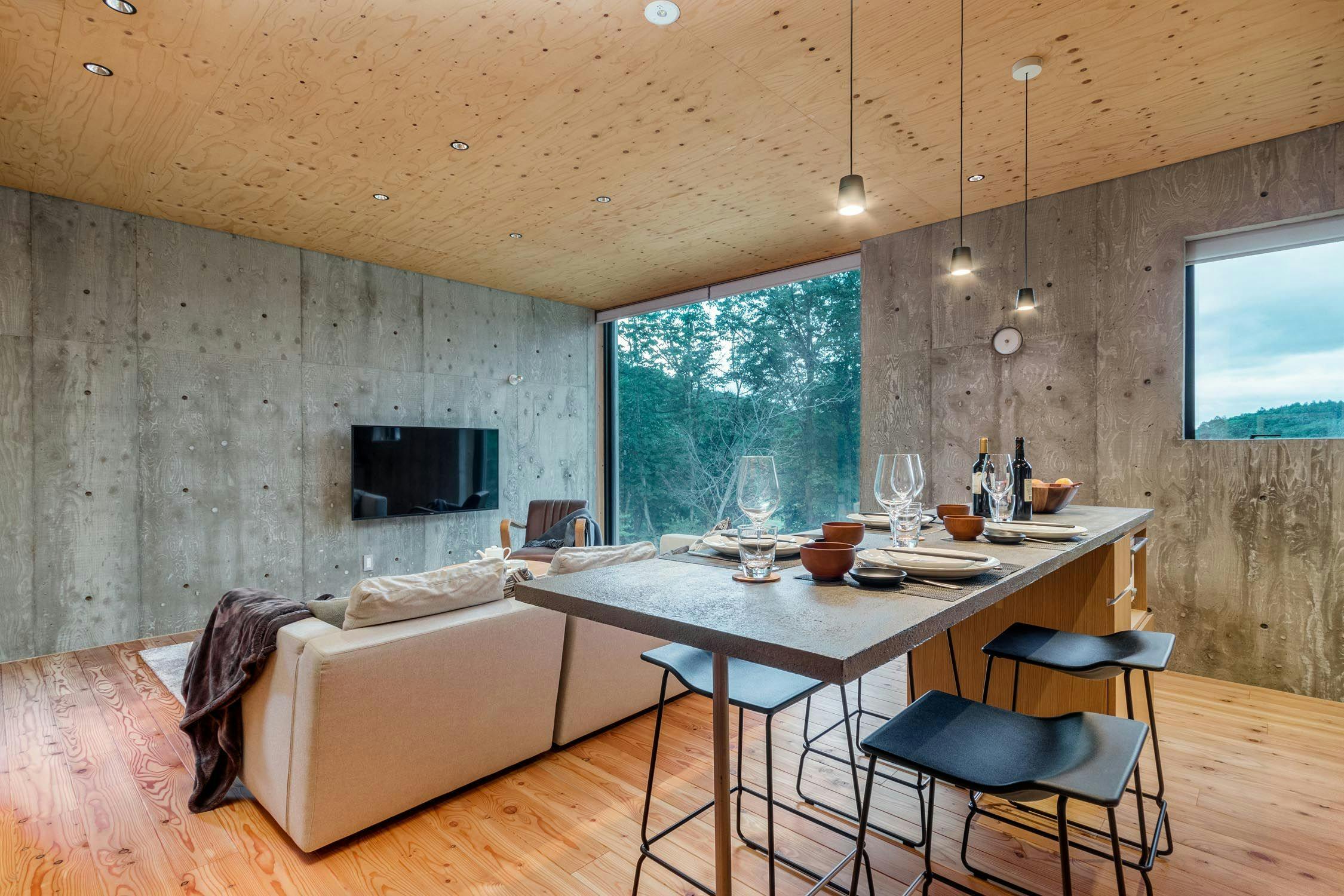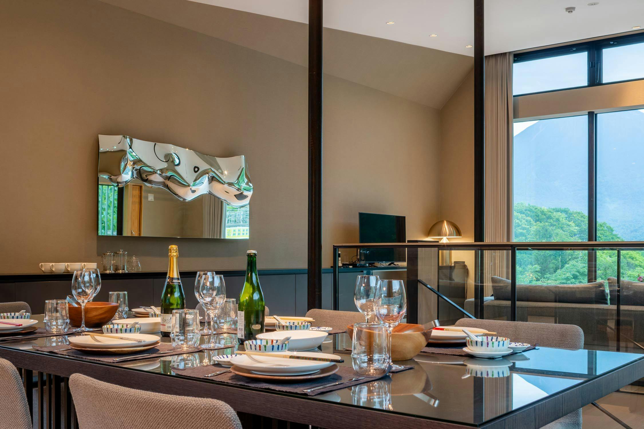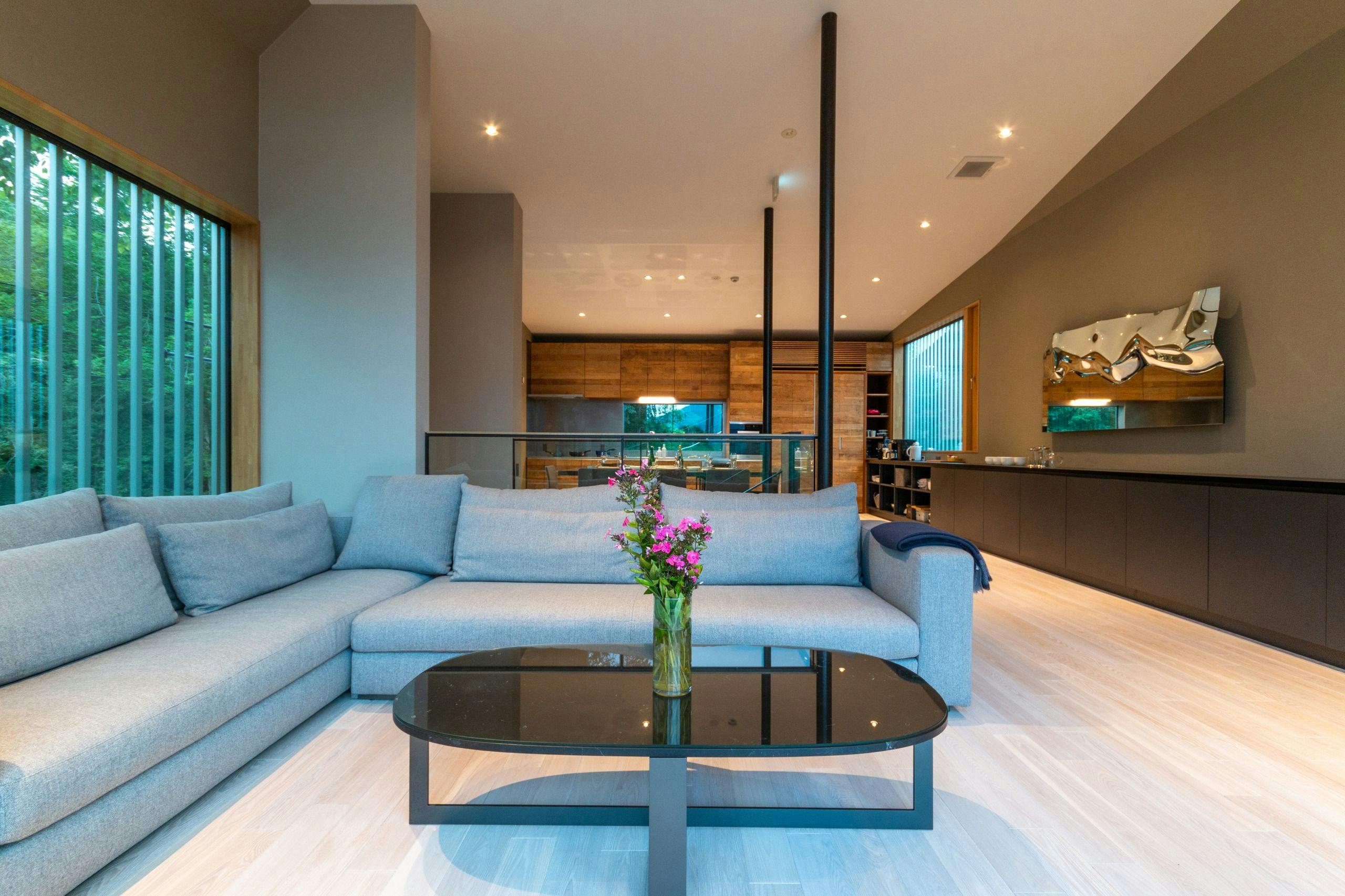 にぎやかなローワーヒラフと森のはざまに建てられた3階建のラグジュアリ別荘です。最上階の一面ガラス壁からは羊蹄山やニセコ山系が一望できる大パノラマとなっております。 広々としたリビングダイニングで贅沢なプライベート空間をご満喫ください。1階:ベッドルーム1部屋・シャワールーム1つ・ランドリー2階:ベッドルーム3部屋・バス、シャワールーム各1つ3階:リビング・ダイニング・キッチン・9名様でご宿泊の場合はお布団1組をご用意致します。