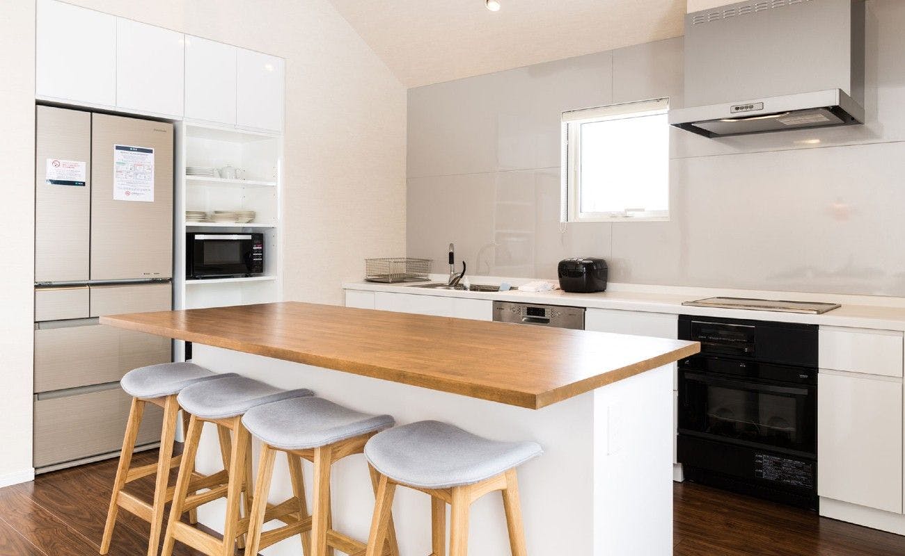 ベッドルームが4室にシステムキッチンがついたコテージ。