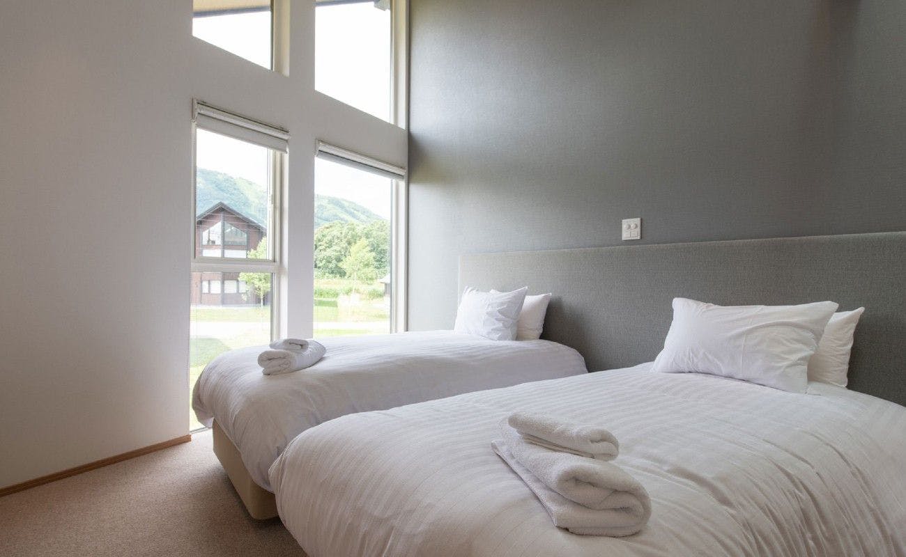ベッドルームが2室にシステムキッチンがついたコテージ。
