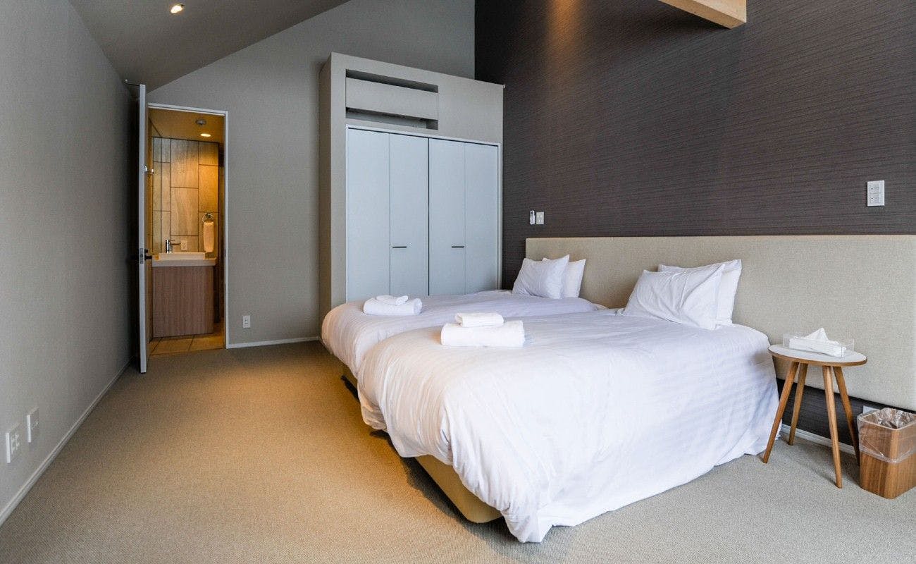 寝室が2つ(オンスイート)、バスルームが2つ、