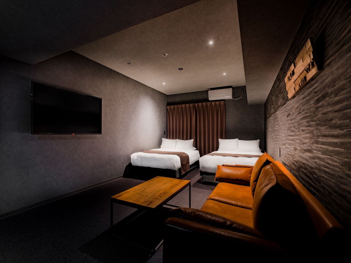 ※常設でダブルベッド(140センチ幅)を2台ご用意いたしております。ダブルベッドは1台につき2名様までおやすみいただけます。5名様でのご宿泊の場合1台ソファベッドをご用意いたします。
