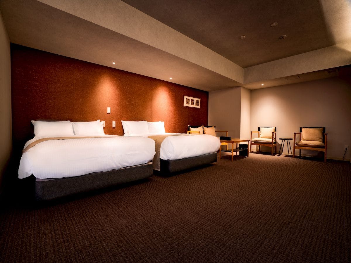 ※常設でダブルベッド(140センチ幅)を2台ご用意いたしております。ダブルベッド1台につき2名様までおやすみいただけます。5名様以上のご宿泊の場合1名様につき1台折り畳みベッドまたはお布団をご用意いたします。