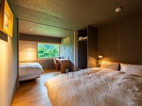 小高い丘に建つ、18番ホールを望む絶景のVillaはツインルームとキングサイズベッドのお部屋です。自慢の檜風呂は半露天式です。