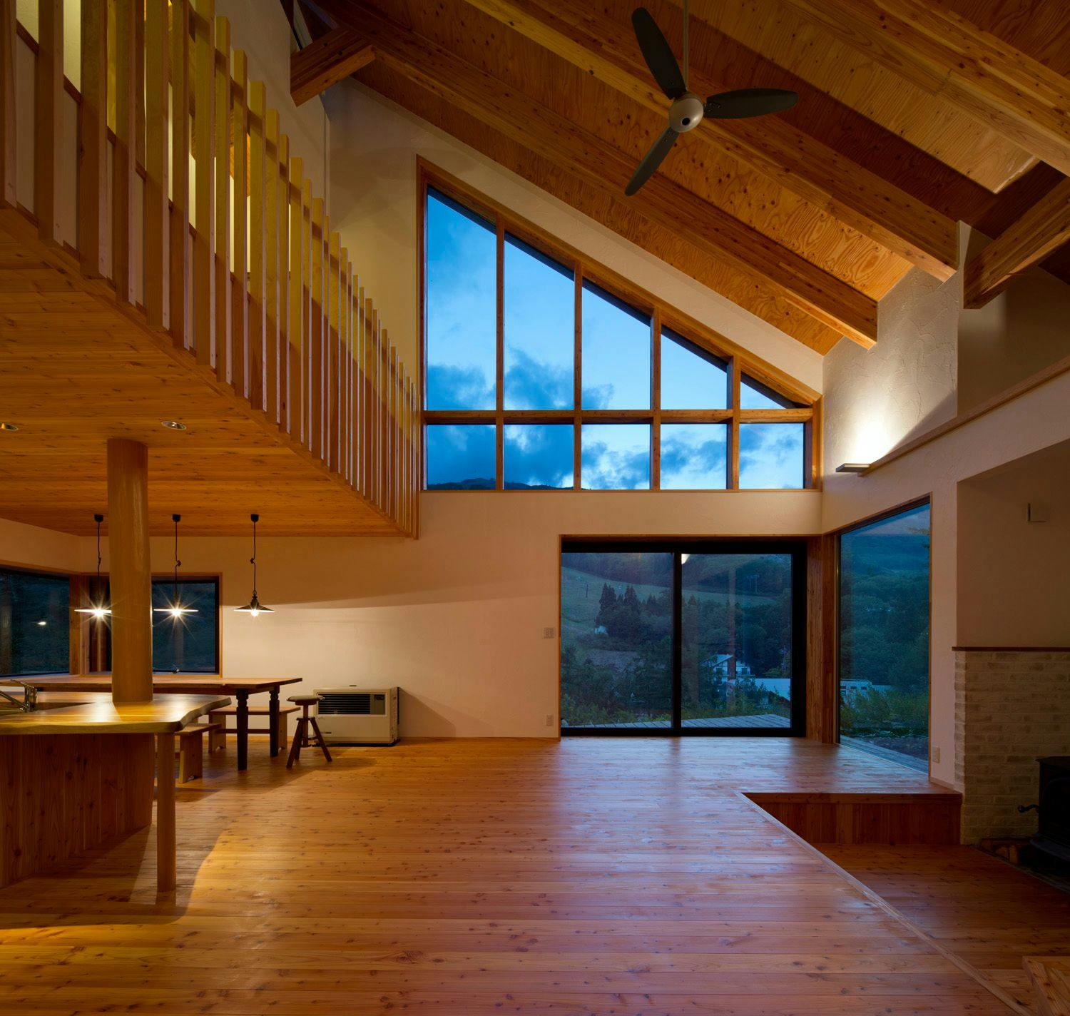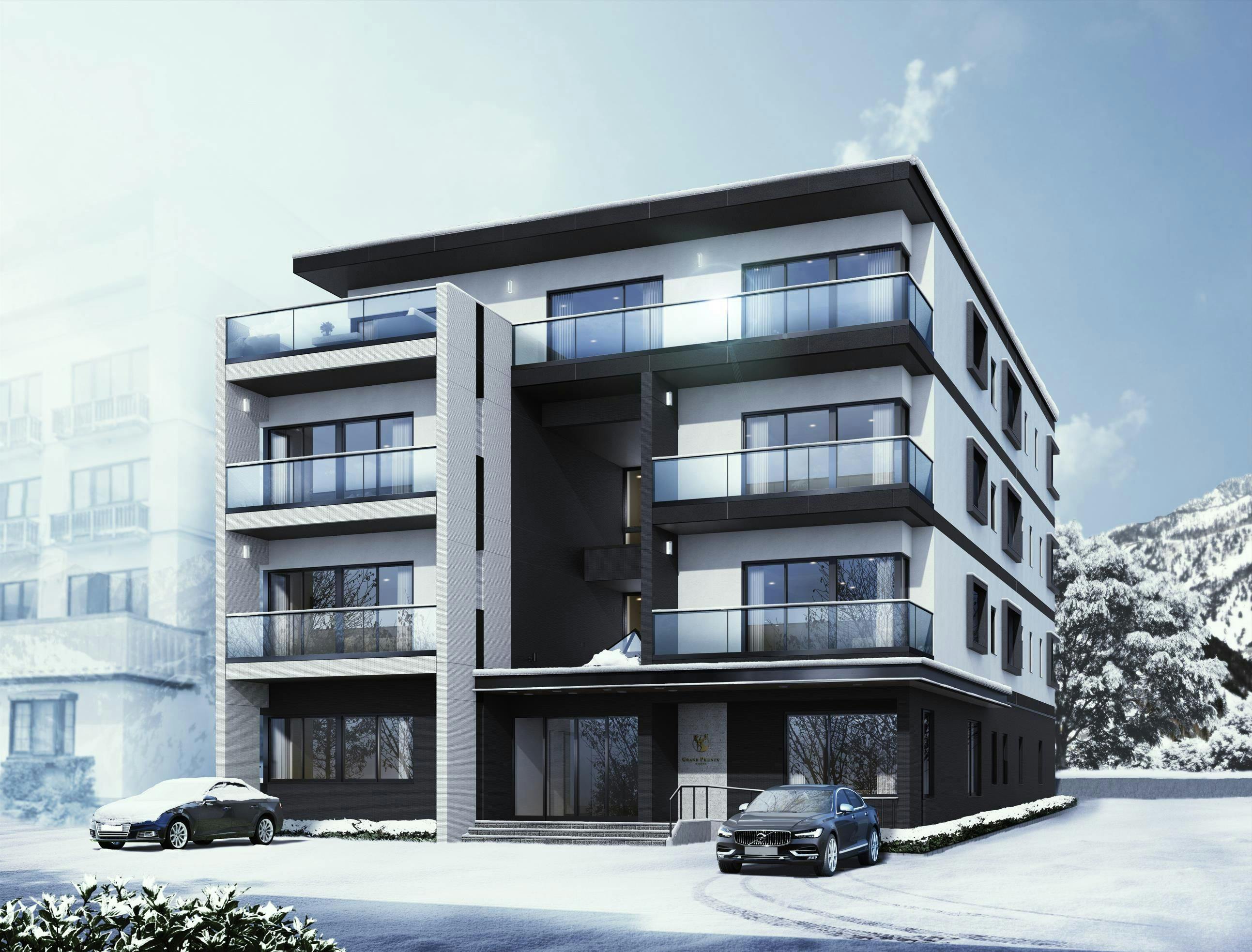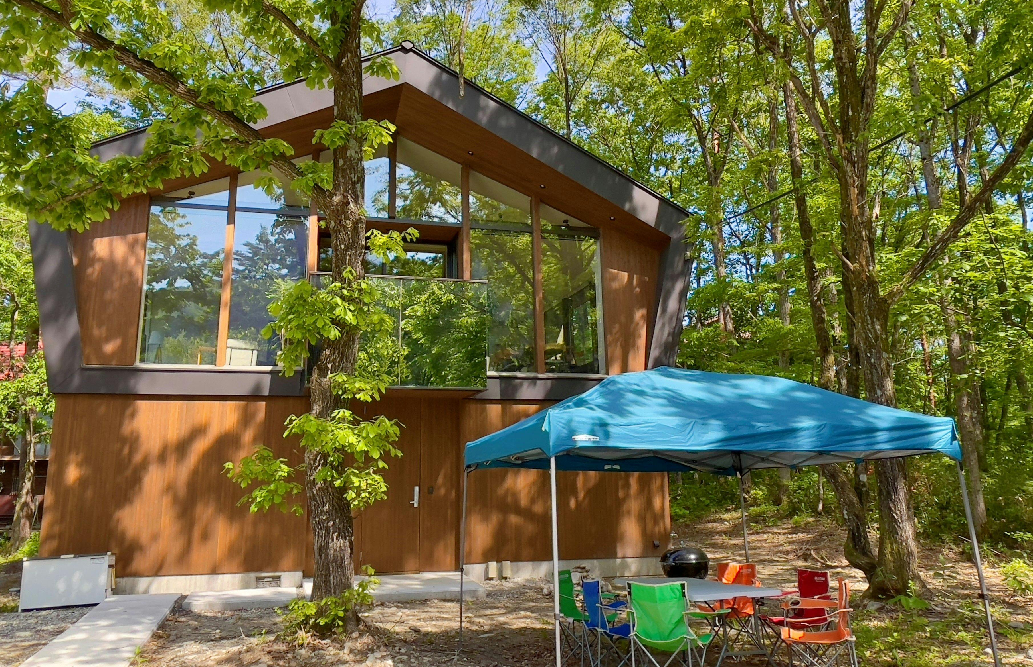 エコーランド地区のメインエリアから徒歩約5分の好立地にある高級貸別荘「白馬三山リゾート」。 四方の大きな窓と異国の雰囲気を醸し出すガス暖炉がある広々としたリビングが贅沢なステイを演出。
