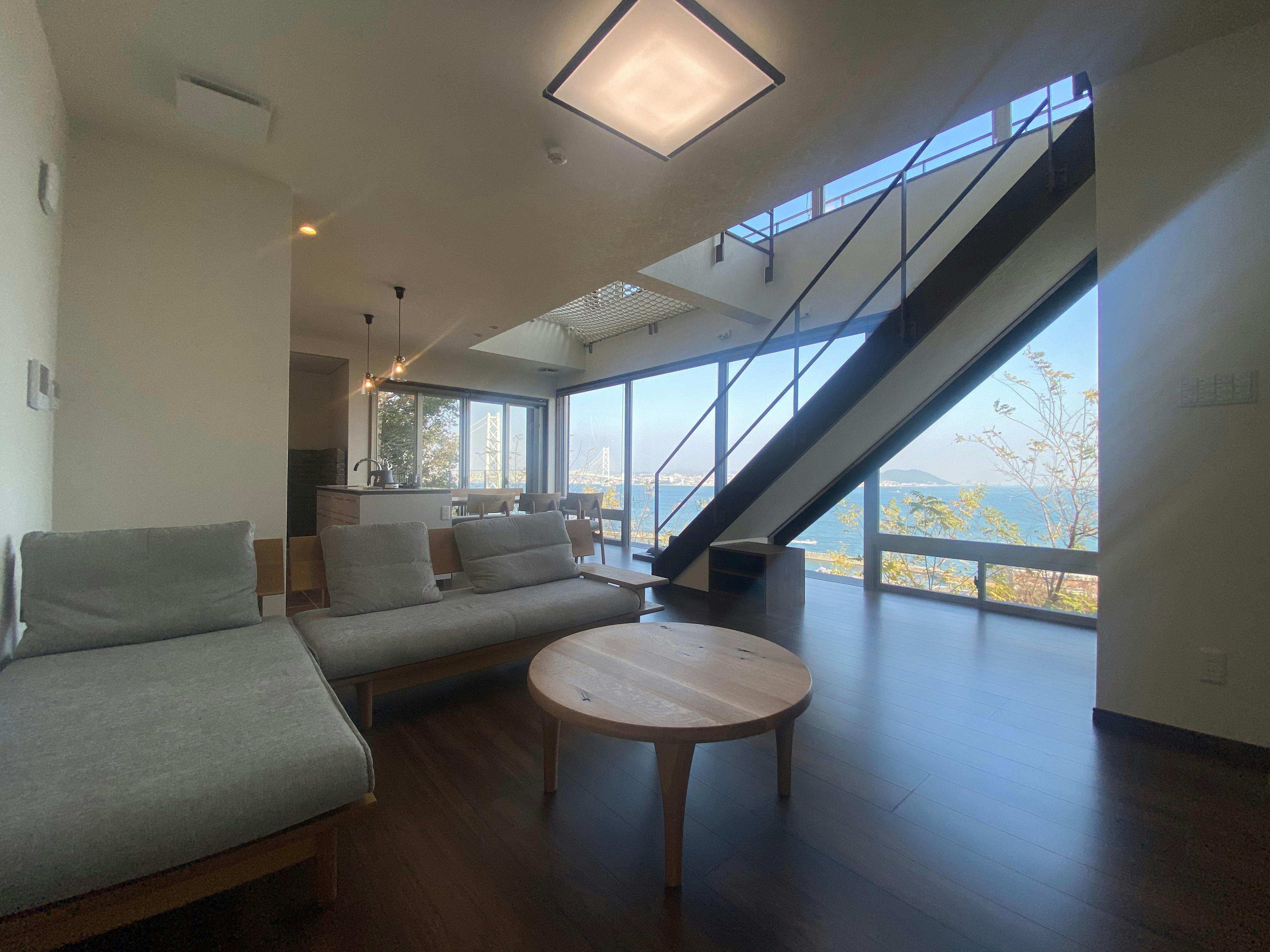 2021年3月新築グランドオープン。明石海峡を一望できる絶好のロケーションで、宿泊者専用のドライブスルーゲートをくぐれば周囲を海と森に囲まれたプライベート空間が広がります。