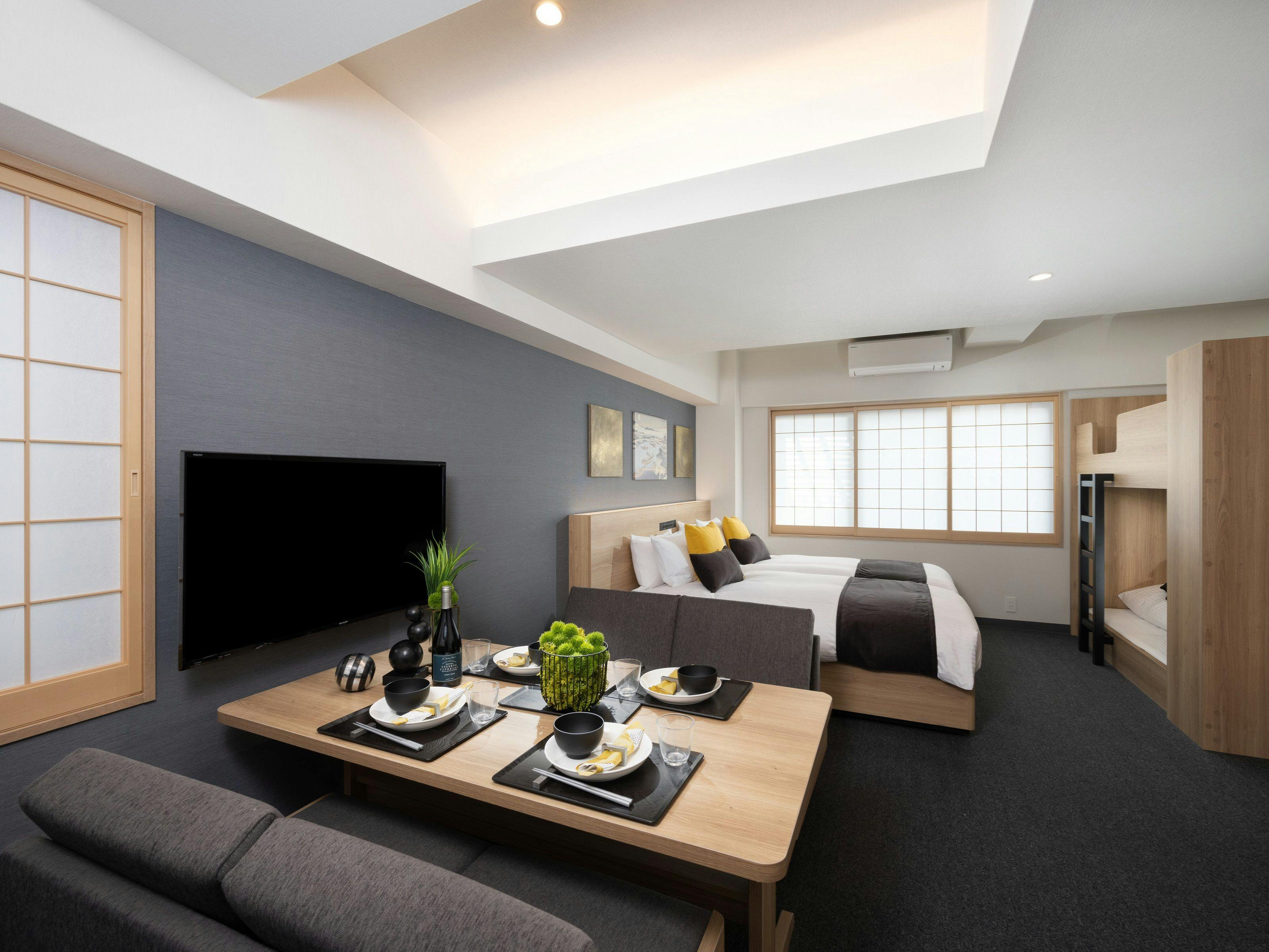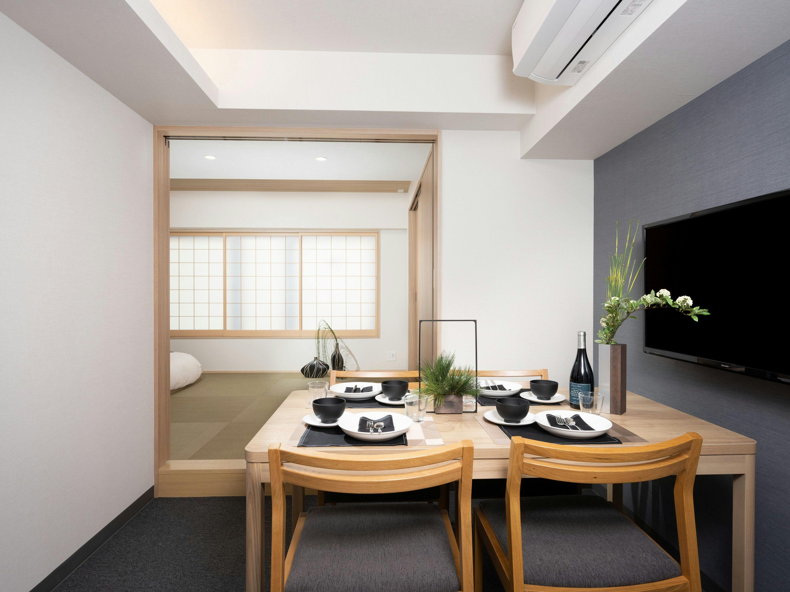 寝室、和室、ダイニングルームがあり、4名様で広々ご利用いただいたり、和室にお布団を敷いて最大7名様でご利用いただくことも可能です。