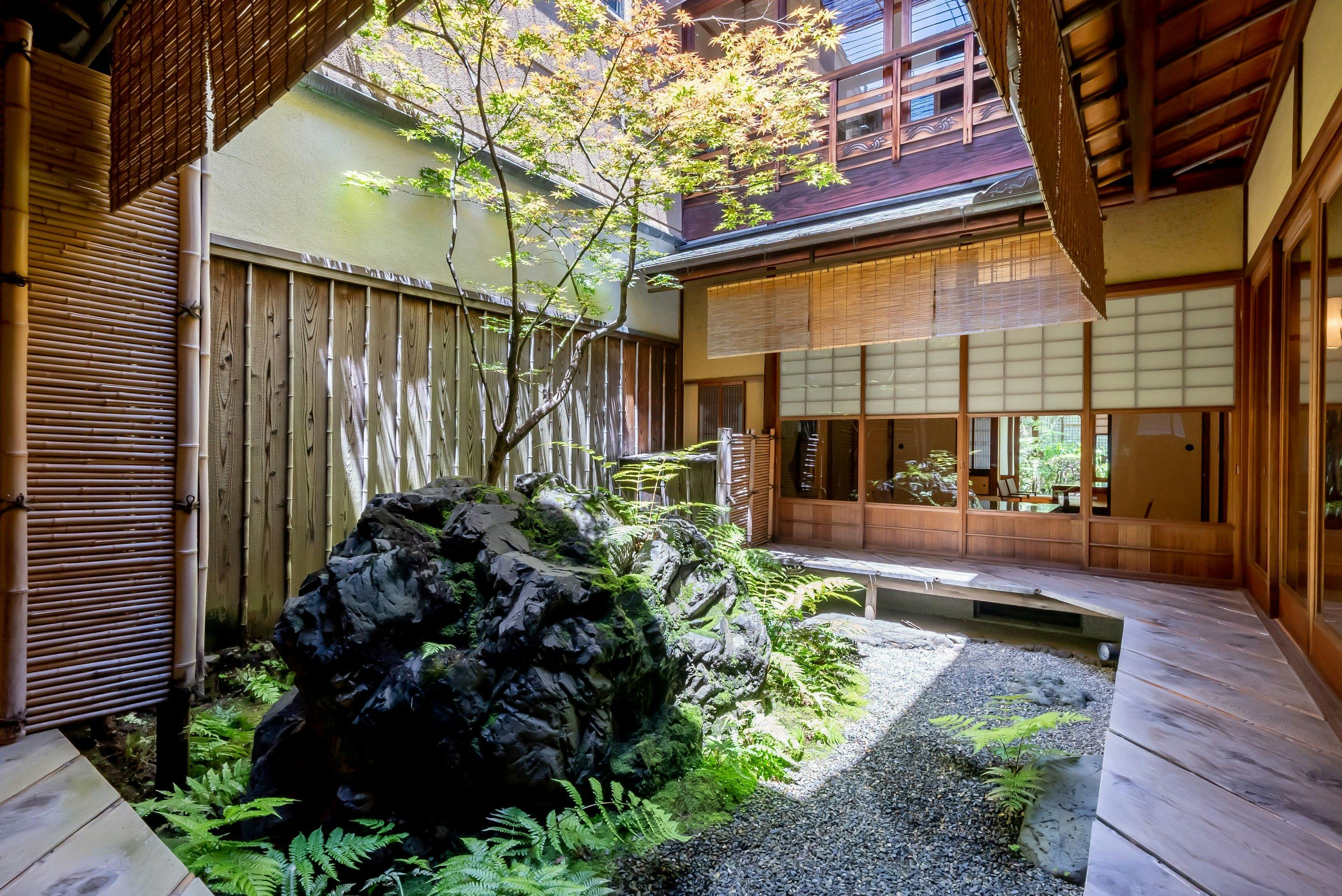築160年の伝統的な町屋を改装した、2つの庭を有する広大な一棟貸し施設です。吹き抜けの庭を眺めながら心ゆくまでお寛ぎいただけます。セミダブルベッド2台、クイーンサイズベッド1台、和布団5セットをご用意しています。