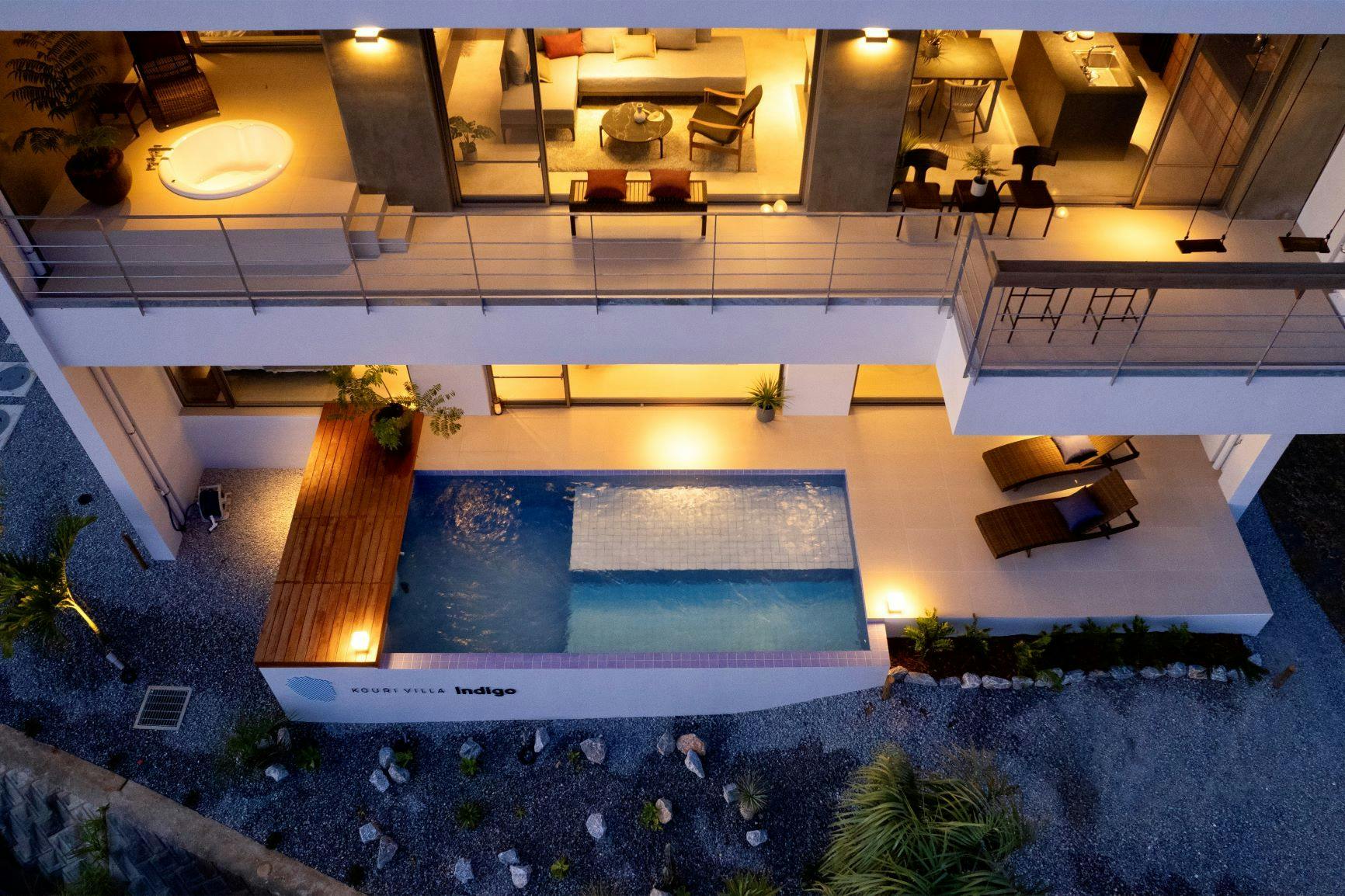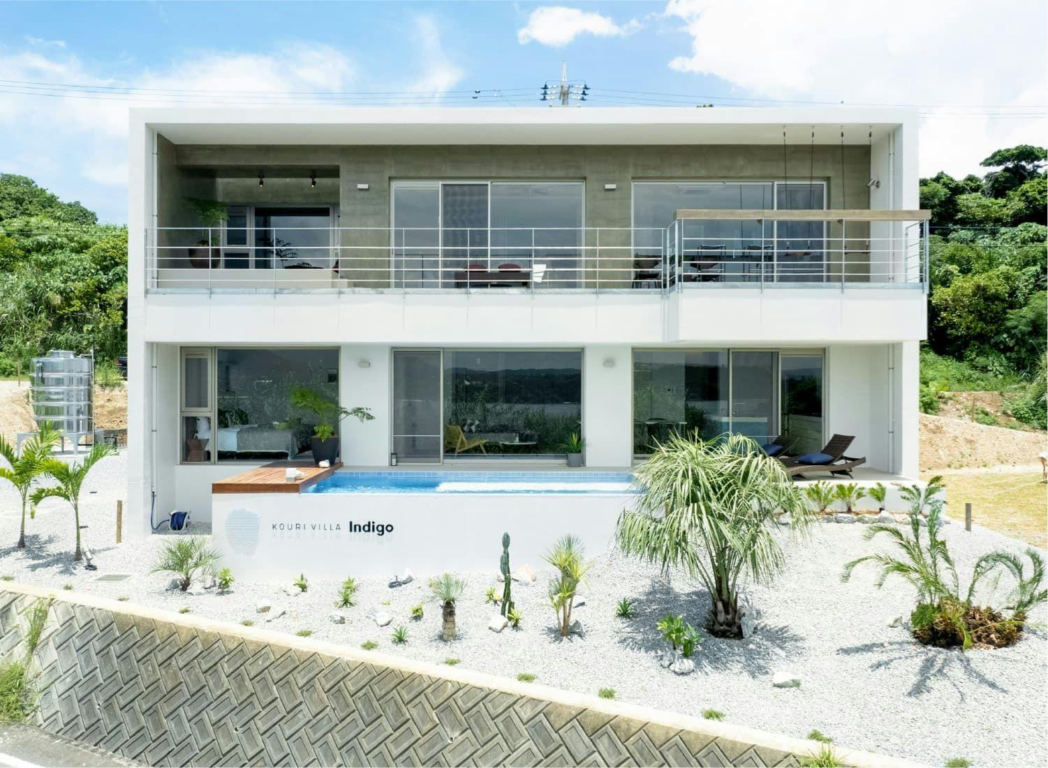 KOURI VILLA Indigoは、沖縄本島北部のエメラルドグリーンの海に囲まれた小さな島「古宇利島」にあるプライベートヴィラ。