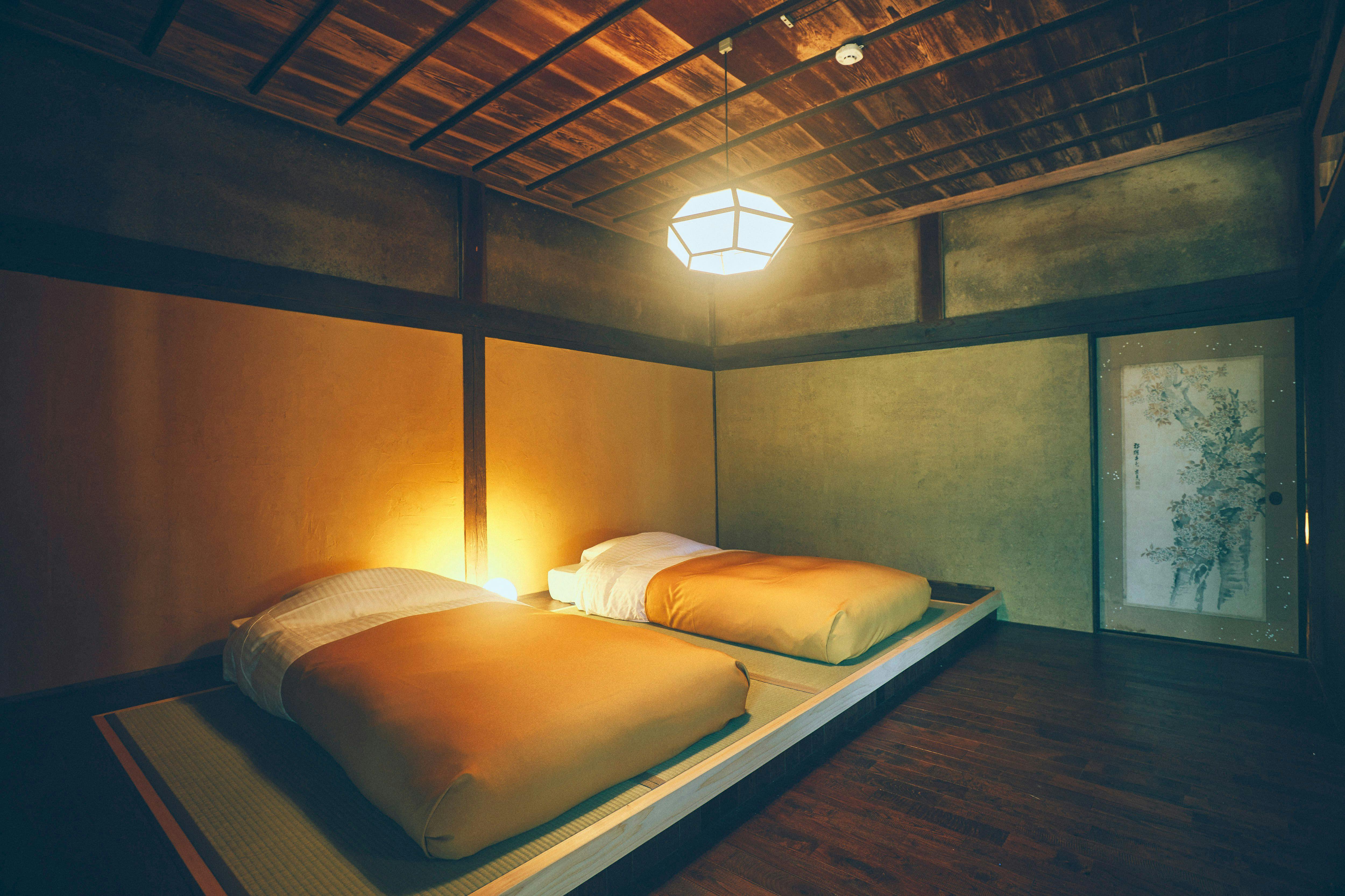 明治からの時を重ねた 続き間の空間土間から寝室まで見渡すことができるひと続きの空間は、一棟貸しでの滞在を存分に楽しむことができます。居間から望む広々とした窓からは、先祖代々大切に受け継がれてきた蔵や庭を眺めることができます。ソファや縁側に腰掛ければ、何もしない時間がゆっくりと流れます。