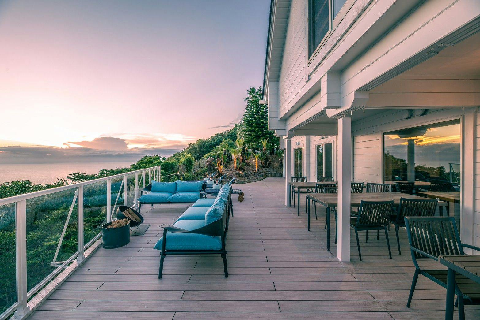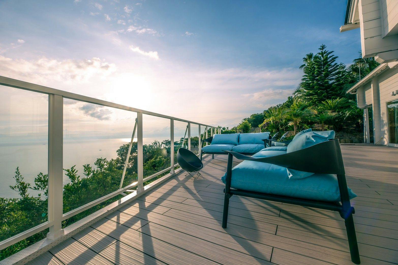 駿河湾を見晴らす広いデッキテラスからは海に沈む夕日が美しく、ただただその自然美に圧倒されます。