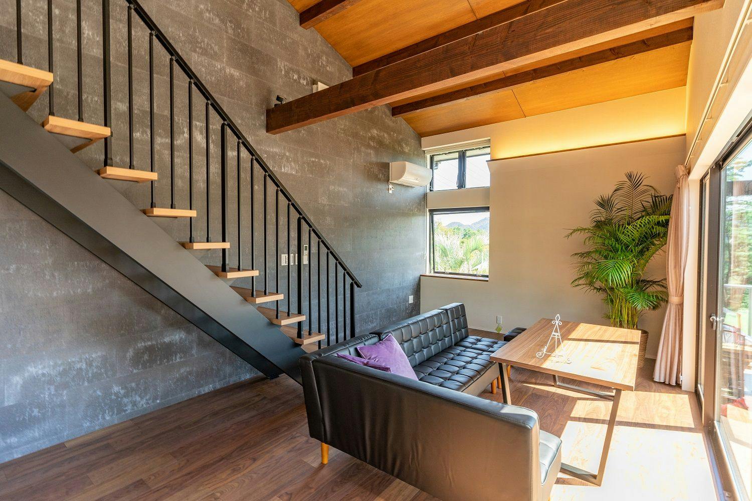 2階建てのお部屋となっております。2階のテラスにはソファもあり、満天の星空も堪能していただけます。